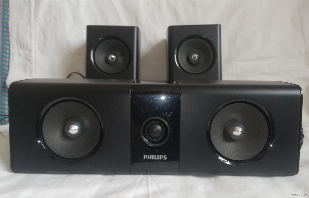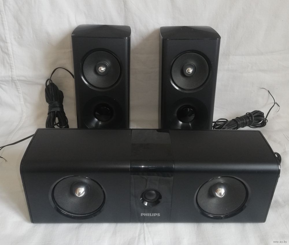 Центральная колонка(сабвуфер), и две фронтальные. Без дефектов.