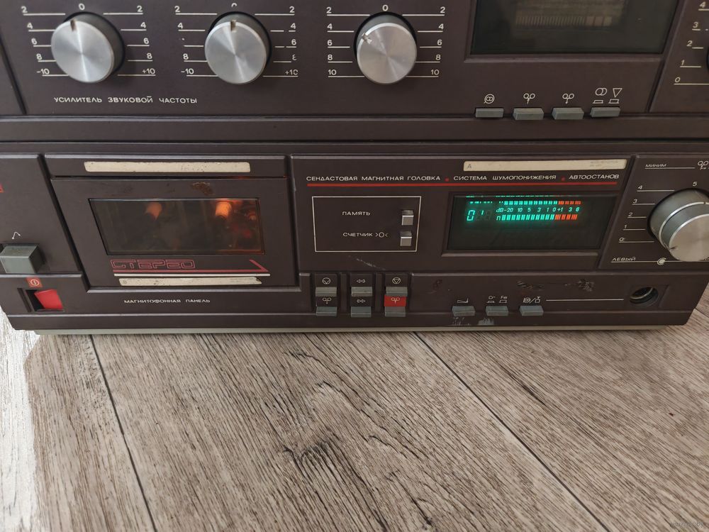 акустическая система Романтика советская.высылаю.насчет работоспособности. кнопка кассеты запавшая, надо снимать панель и делать. все остальное работает. только прослушать нет возможности. нет колонок.