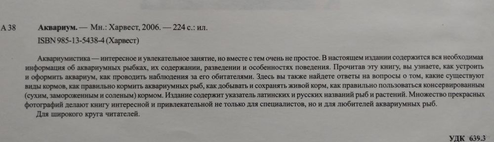 Аквариум. Всё об аквариумах. Аквариумная флора. Содержание и разведение аквариумных рыб. Аквариумные рыбы. Минск: Харвест, 2006г., 224 стр., илл. Твердый переплёт, суперэнциклопедический формат.