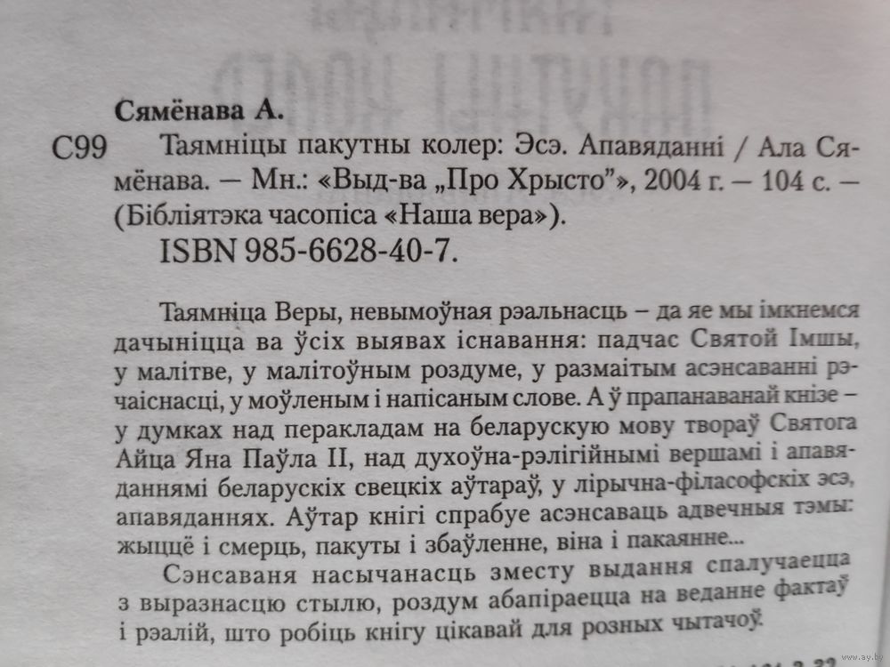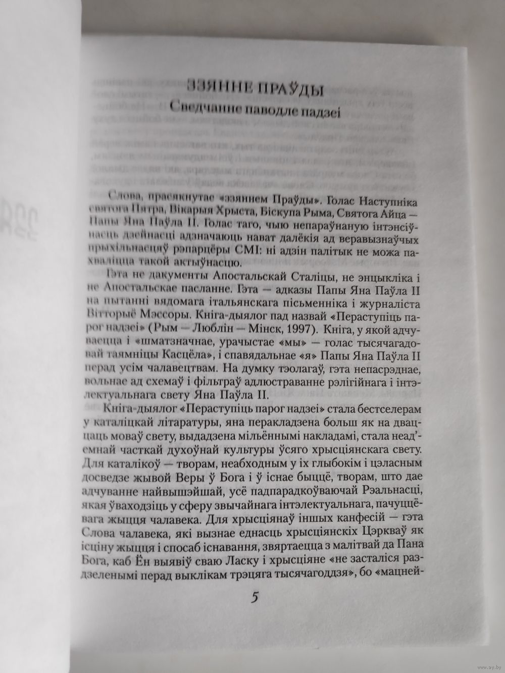 Таямніца Веры, невымоўная рэальнасць – да яе мы імкнемся дачыніцца ва ўсіх выявах існавання: падчас Святой Імшы, у малітве, у малітоўным роздуме, у размаітым асэнсаванні рэчаіснасці, у моўленым і напісаным слове. А ў прапанаванай кнізе – у думках над перакладам на беларускую мову твораў Святога Айца Яна Паўла ІІ, над духоўна-рэлігійнымі вершамі і апавяданнямі беларускіх свецкіх аўтараў, лірычна-філасофскіх эсэ, апавяданнямі. Аўтар кнігі спрабуе асэнсаваць адвечныя тэмы: жыццё і смерць, пакуты і збаўленне, віна і пакаянне...