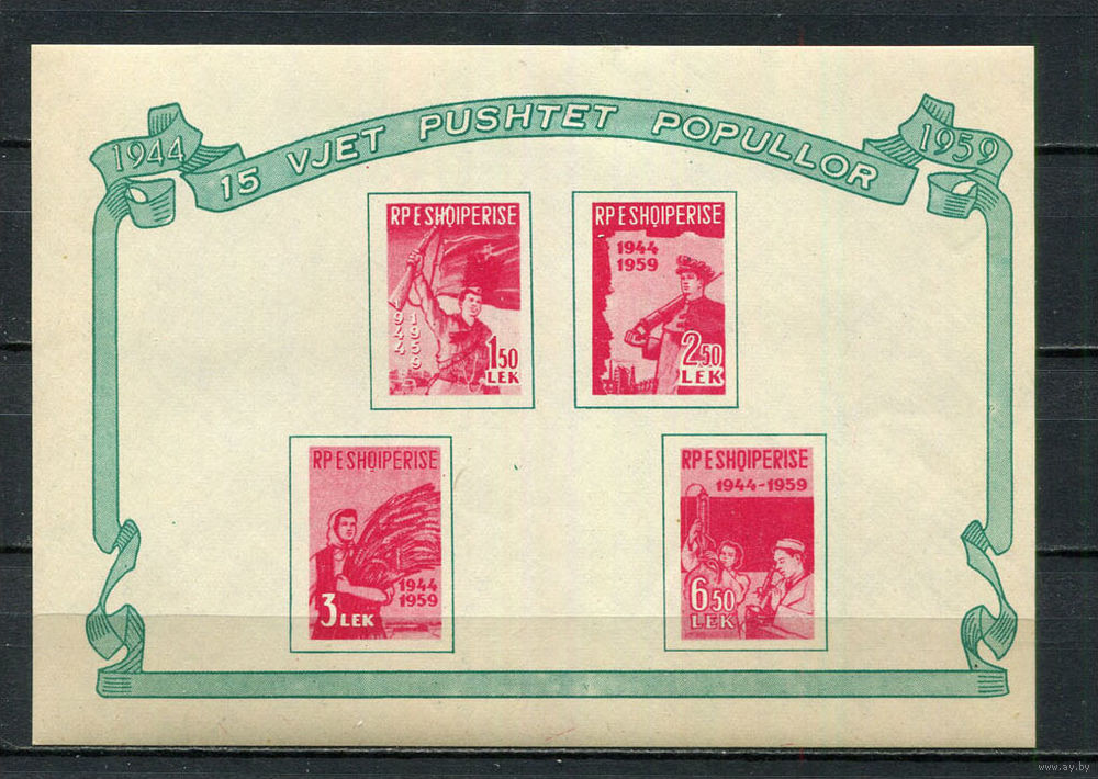 Албания - 1959 - 15-летие освобождения Албании - (незначительные пятна на клее) - [Mi. bl. 5] - 1 блок. MNH. (Лот 74HR)-TG3P7