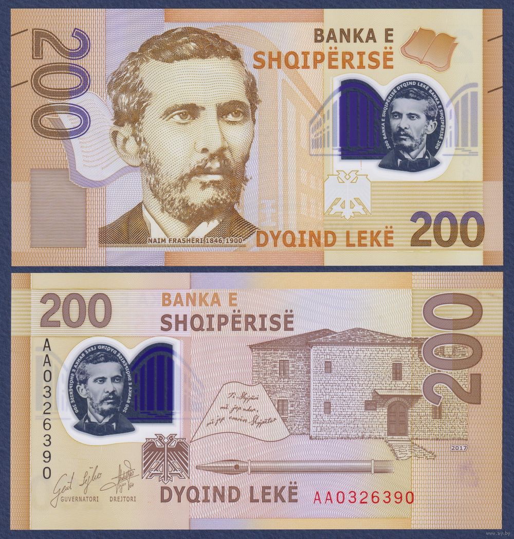 Албания, 200 лек 2017 г, P-W76 (АА, полимер, номинация IBNS 2019, писатель Наим Фрашери), UNC