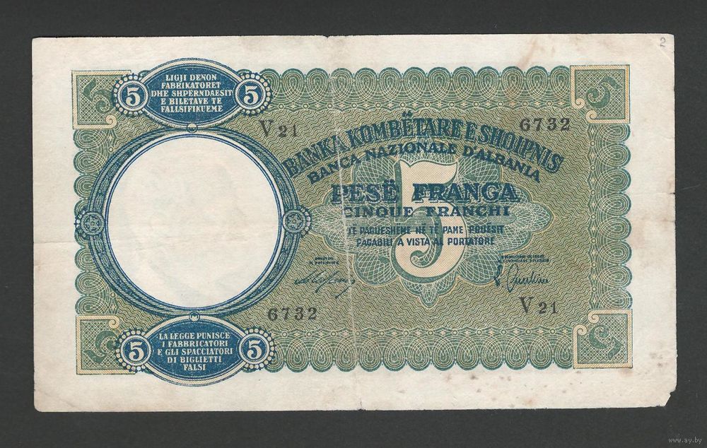 Албания 5 франга 1939 года. Тип P-6. Состояние VF-