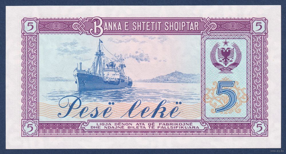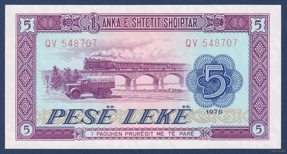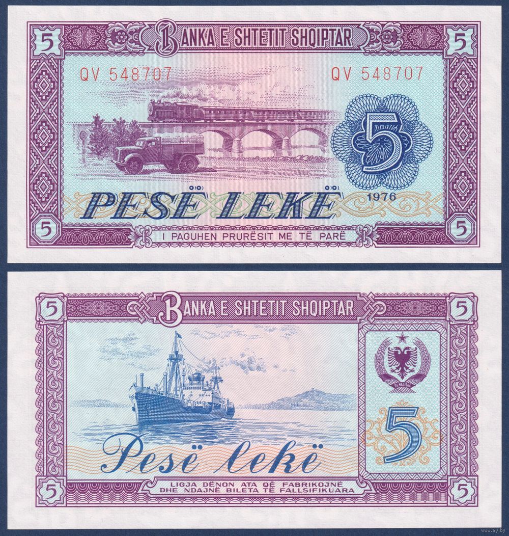 Албания, 5 лек 1976 г., P-42 (QV, грузовик, локомотив, грузовое судно), UNC