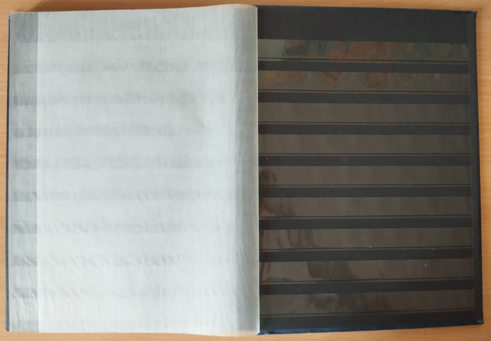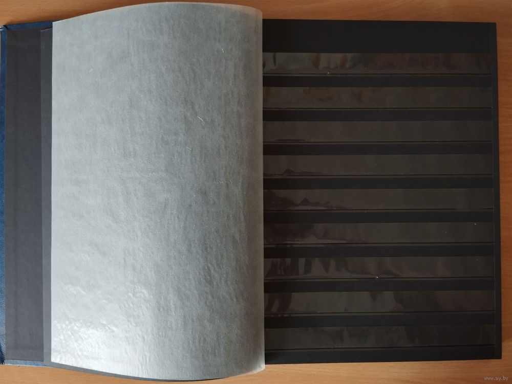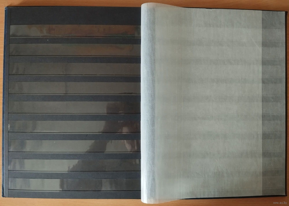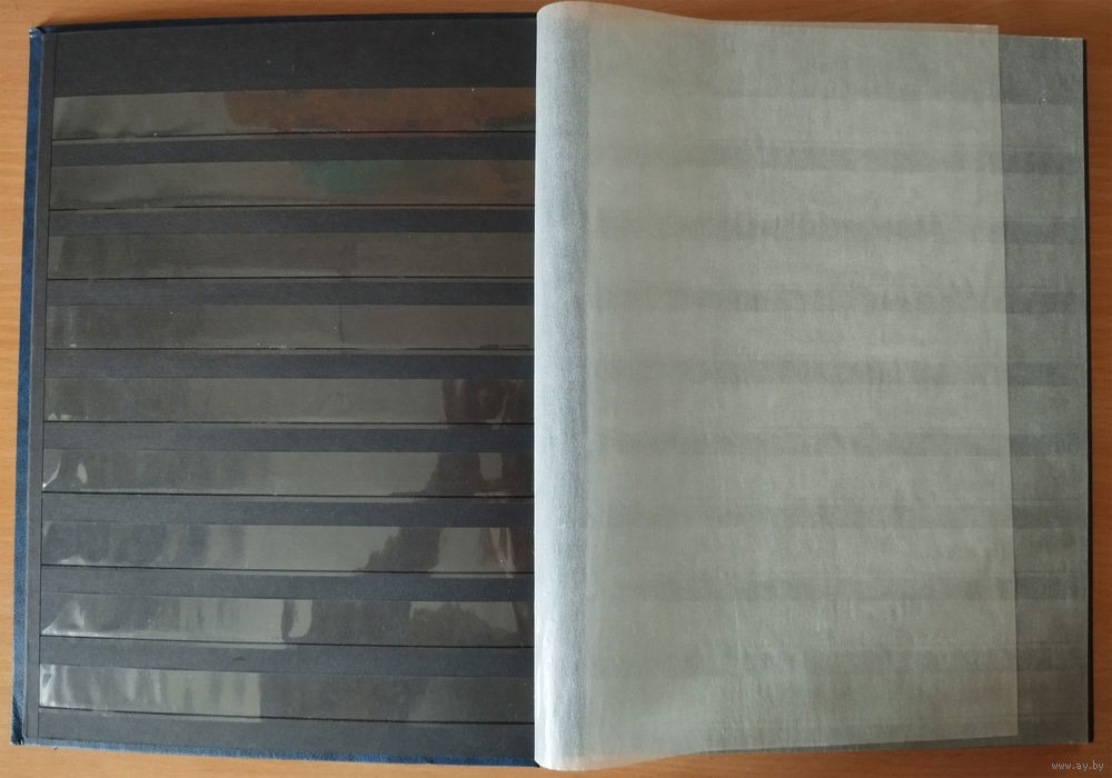 Альбом А4 16 листов - 32 страницы с чёрными листами. В хорошем состоянии, несколько листов кальки погнуты.