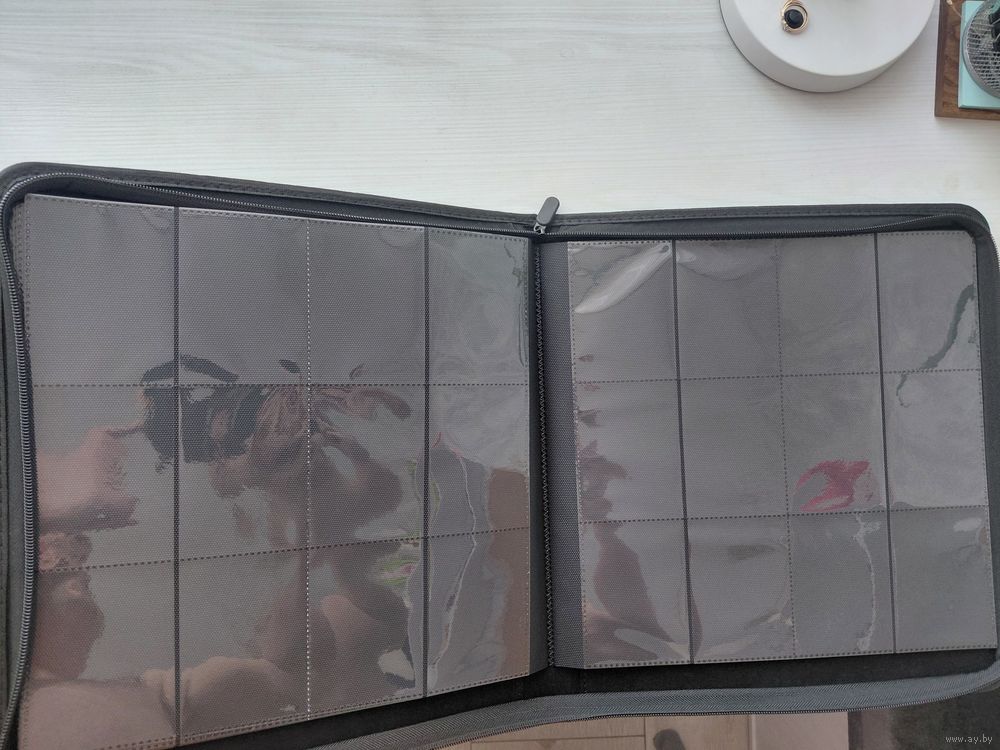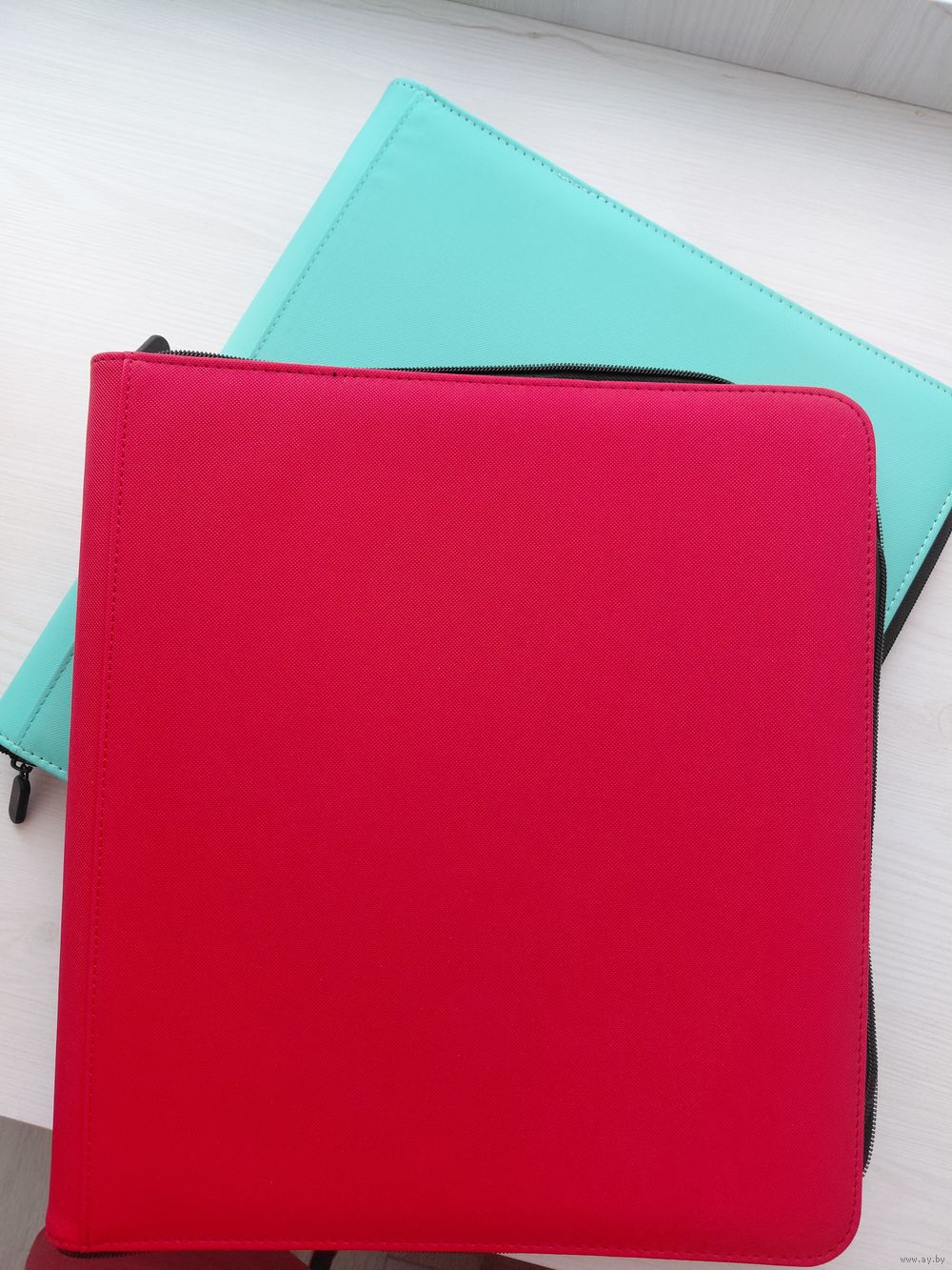 Ткань, пластик, на молнии. Альбом для карточек, Красный. 3 на 4 - 24 ячейки на листе, 20 листов (480 карт), размер ячейки 71 на 96 мм.