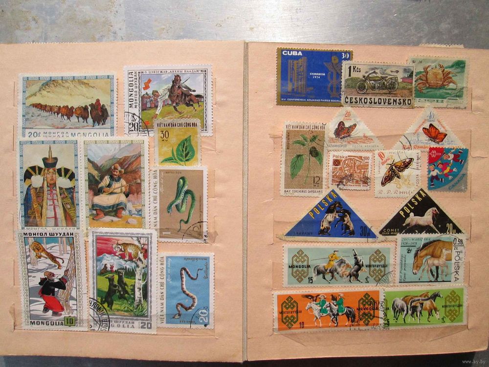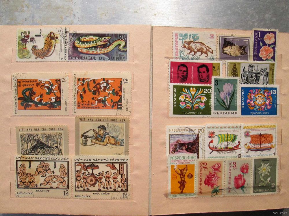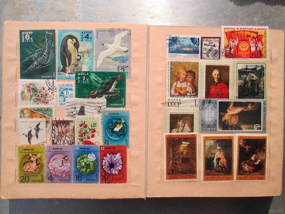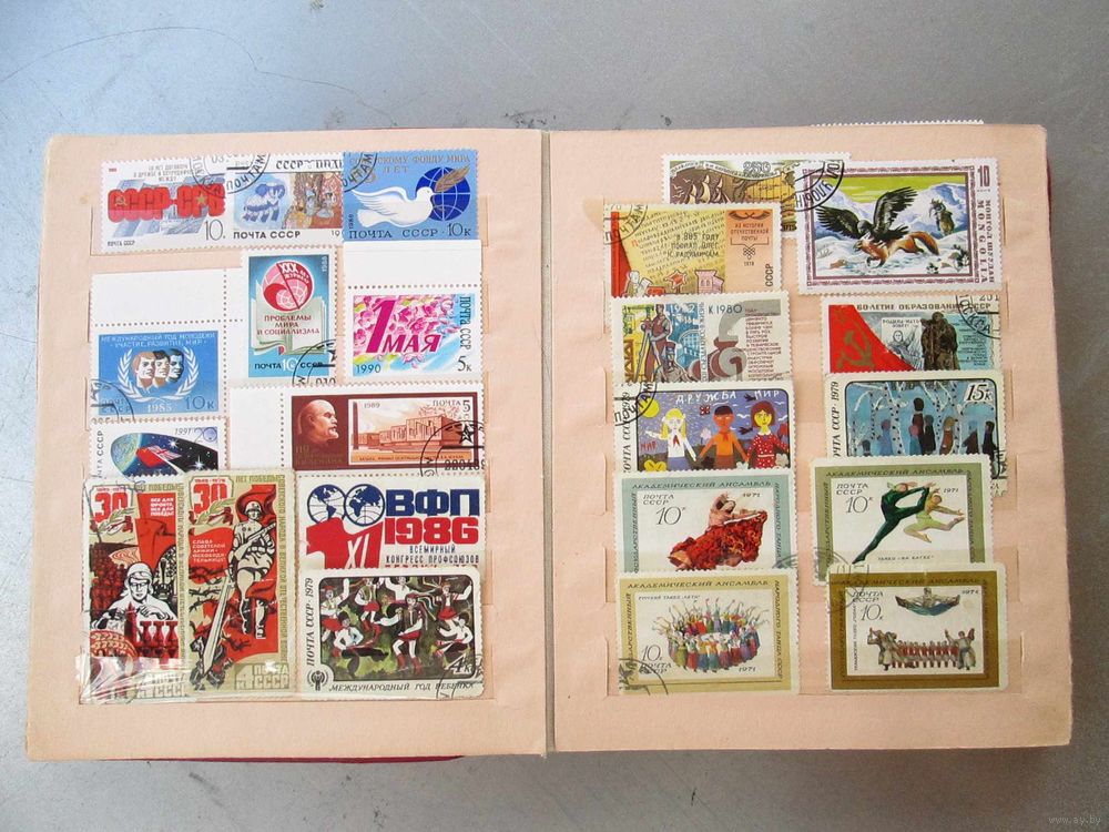 | альбом советской фабрики и марки в разных состояниях, на фото не все марки | |