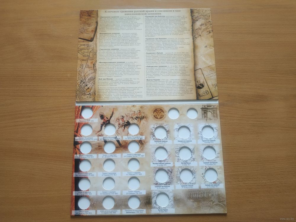 Альбом для монет "200 лет Победы России в Отечественной войне 1812 года" на 28 памятных монет России номиналом 2, 5 и 10 рублей. Россия, 2012 год.