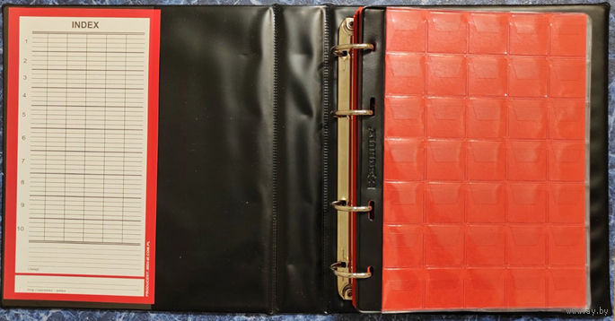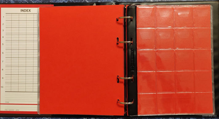 Новый альбом - Количество листов: 10 штук + промежуточные листы красного цвета. Листов на 35 монет: 5 шт.; Листов на 20 монет: 5 шт. |