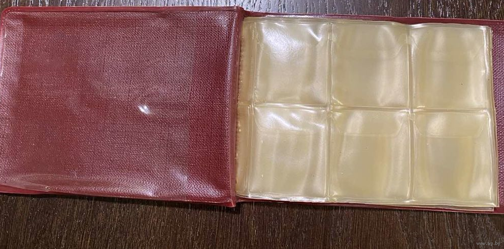 Размер альбома 14х10 см. 48 ячеек с клапанами 4,0х4,5 см. Б/у.