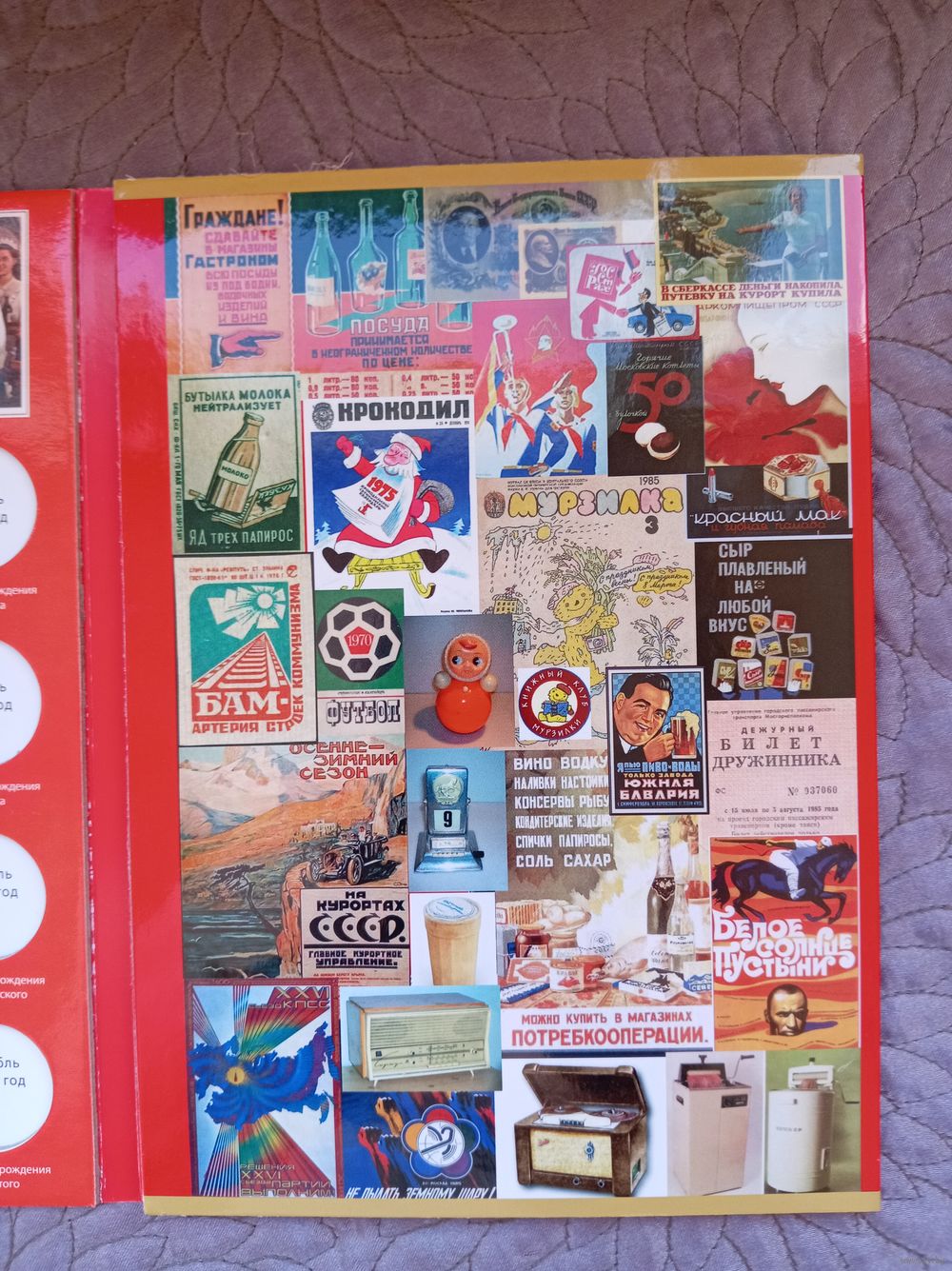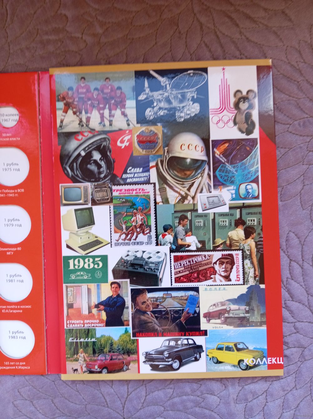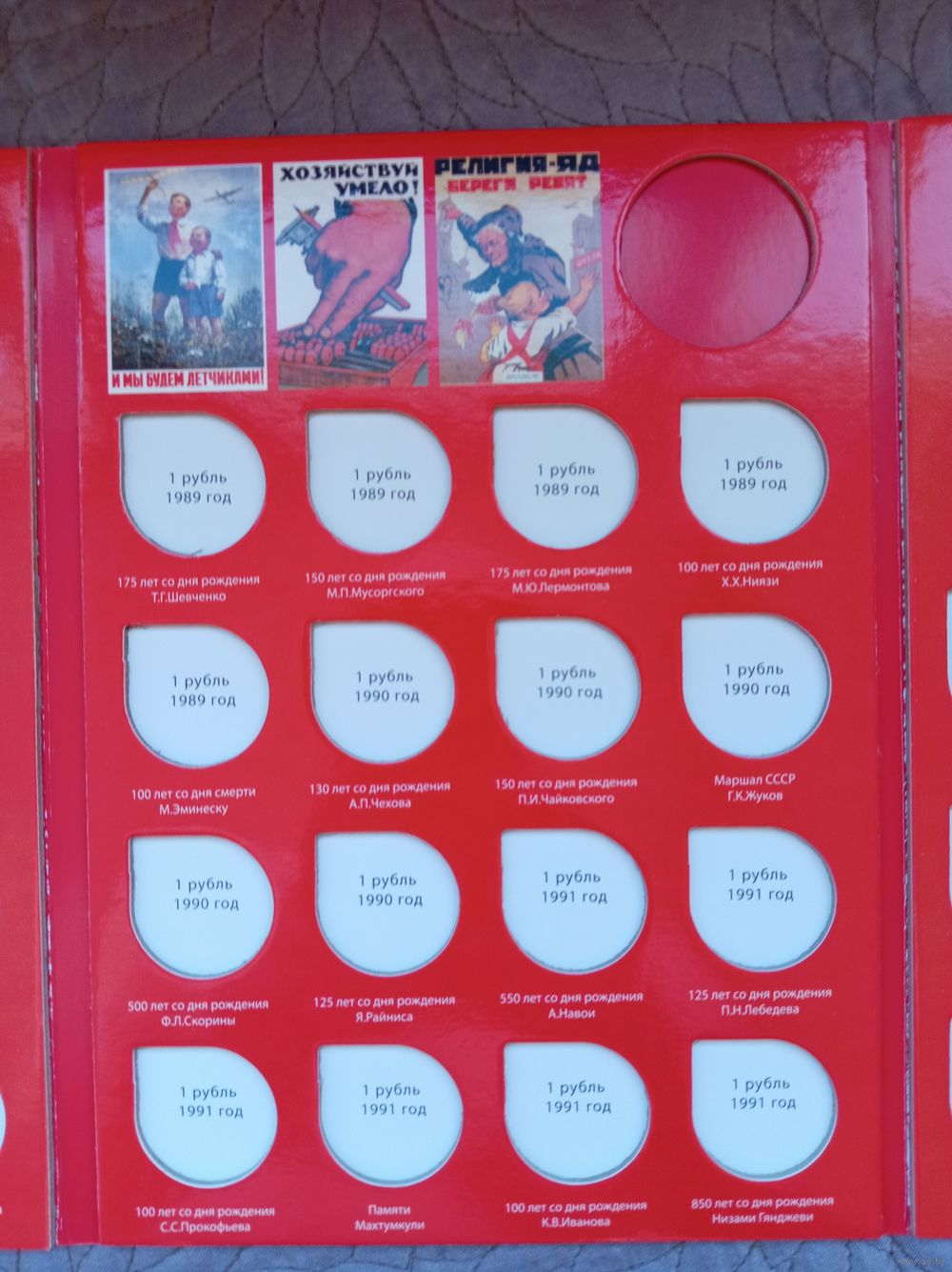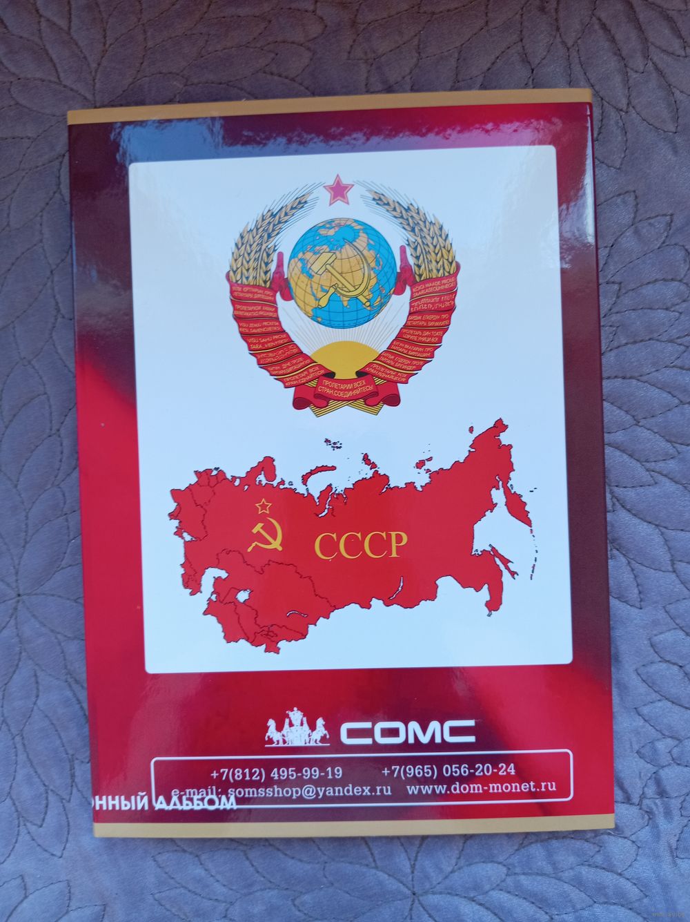 Альбом-планшет для размещения юбилейных монет СССР изготовлен из ламинированного картона с использованием цветной печати.