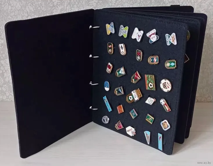 4 листа, на каждом листе по 30 отверстий для крепления значков.