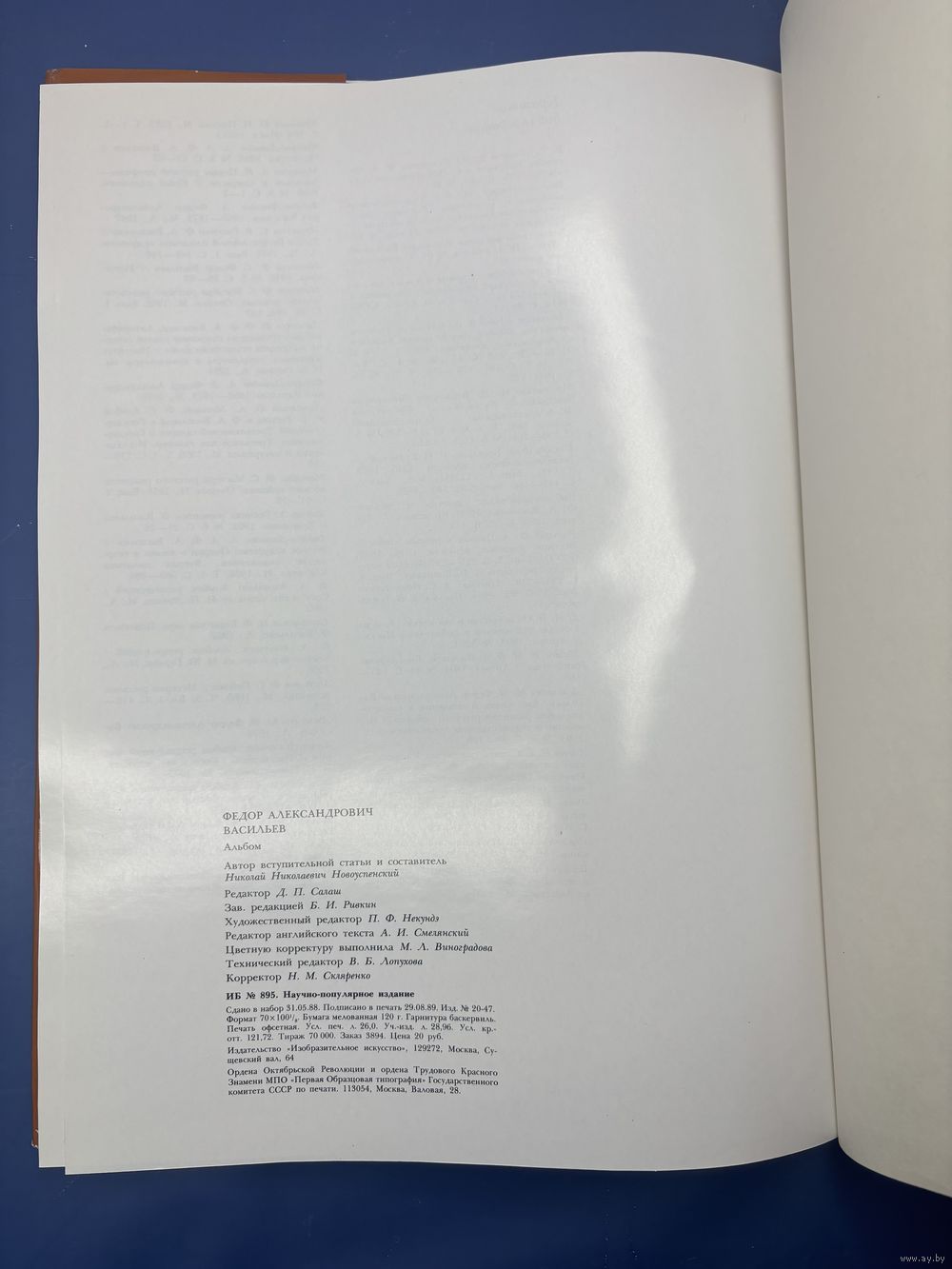 Альбом "Фёдор Александрович Васильев", бумага, печать, Издательство Изобразительное искусство СССР, 1991 г.