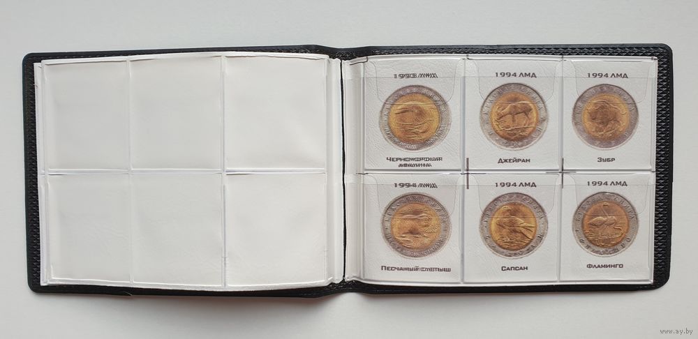 Комплектация: 3 листа по 6 ячеек - карманов (35х35)мм. с напечатанными на задней части изображениями монет.