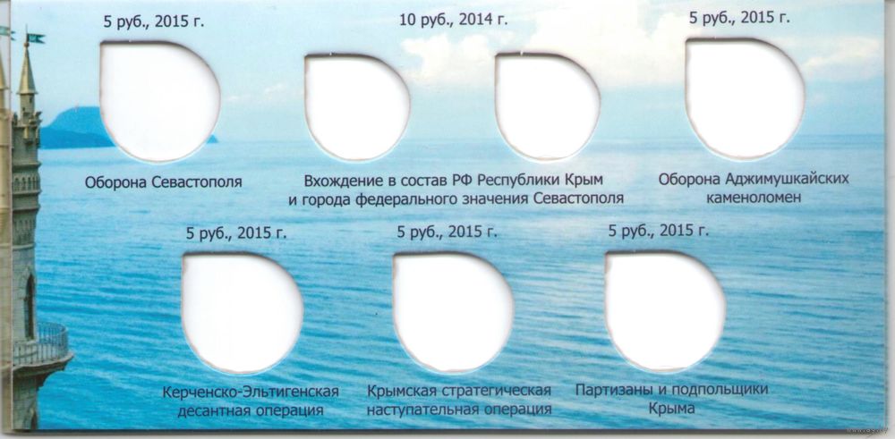 | для 5 рублей х 5 шт., 10 рублей х 2 шт. и 100 рублей бона | |