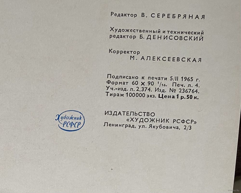 Л. Художник РСФСР 1965 г. 26с., Плотный ламинированный переплёт, уменьшенный удлиненный формат: 13х21 см. Плотная мелованная бумага. На первой странице дарственная надпись.