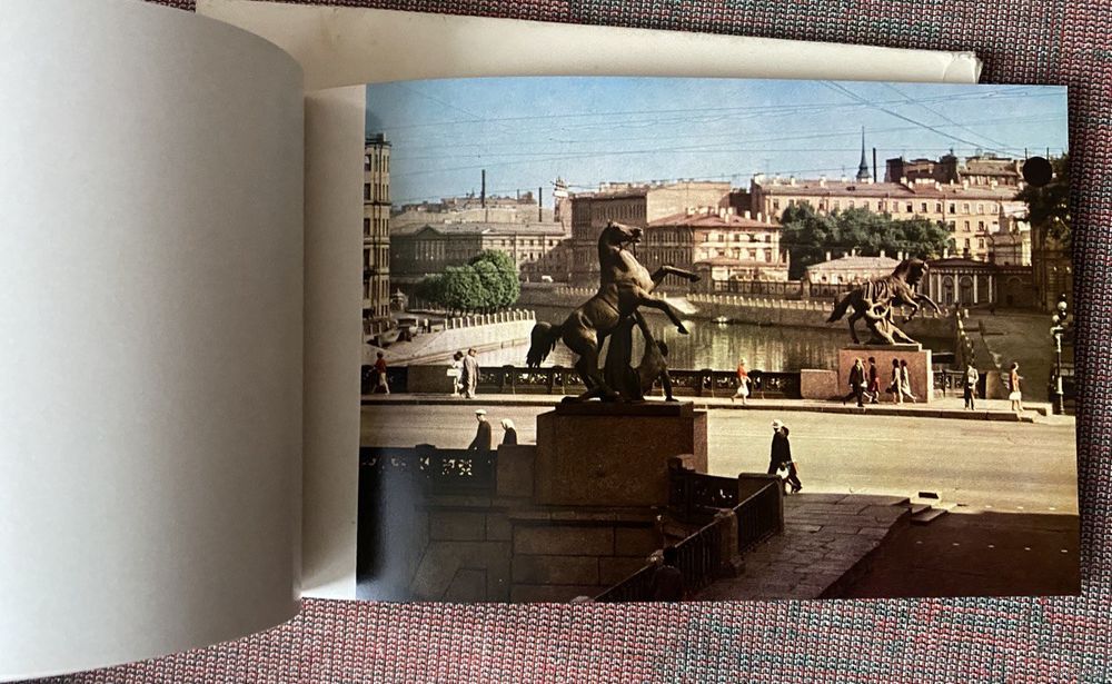 Альбом с видами Ленинграда и аннотацией на 4-х языках (русский, английский, немецкий, французский). Скреплен по краю металлическим креплением.