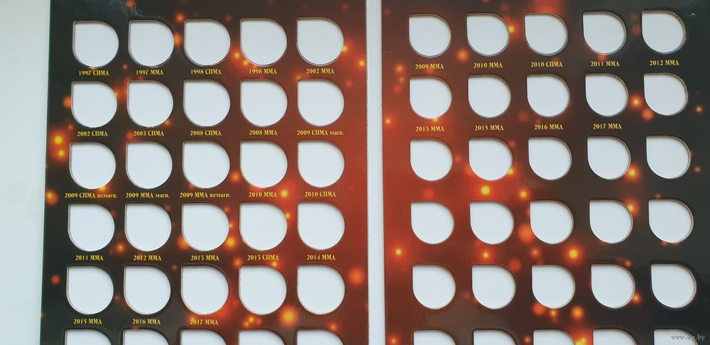 Альбом-планшет выполнен из цветного ламинированного картона. Монеты хорошо зафиксированы, их диаметр совпадает с размером ячеек, а для удобного извлечения монет ячейки выполнены в форме капли. Ячейки подписаны, а монеты расположены в порядке выпуска.Этот альбом является частью серии альбомов- планшетов для современных монет регулярного выпуска в которую вошли также: "10 и 50 копеек", "1 и 2 рубля", "1 и 5 копеек". Все они выполнены в единой стилистике, поэтому Ваша коллекция будет надежно защищена и хорошо упакована.