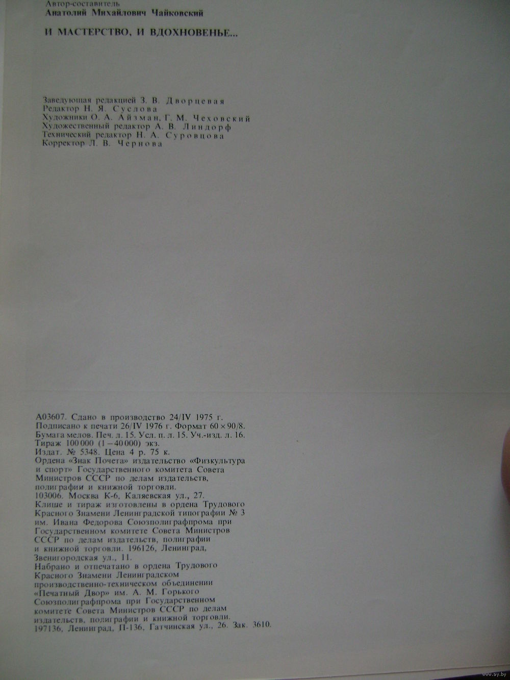5. Автор Чайковский Анатолий Михайлович. Издательство Физкультура и спорт. Год выпуска 1976. Тип обложки Твердый переплет.