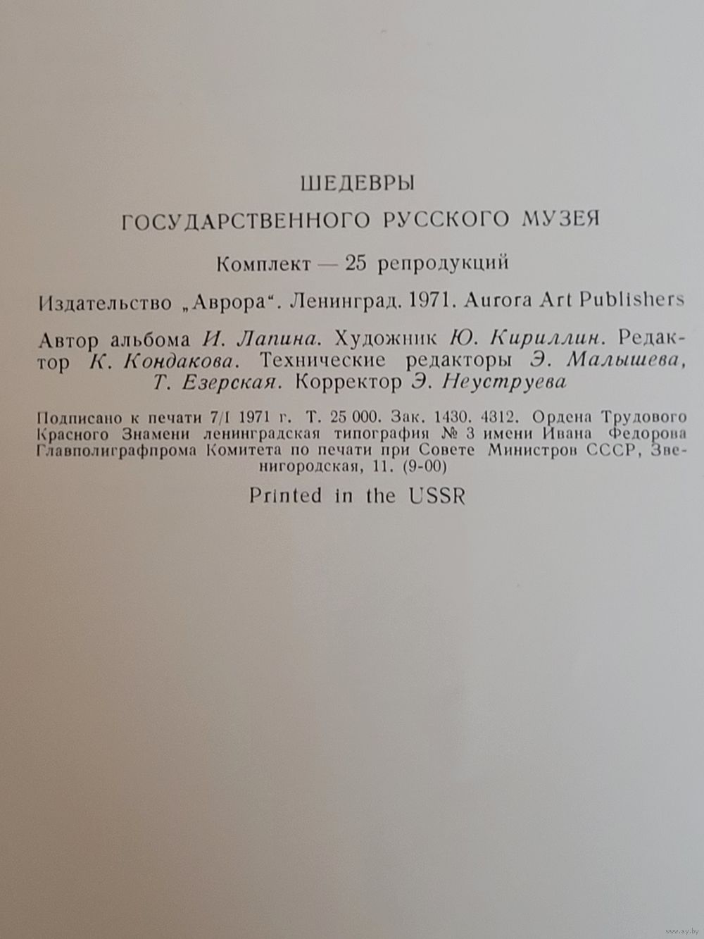 Альбом большой 41*30*2см. Издательство "Аврора" 1971г. Ленинград. Полный комплект 25 шт.