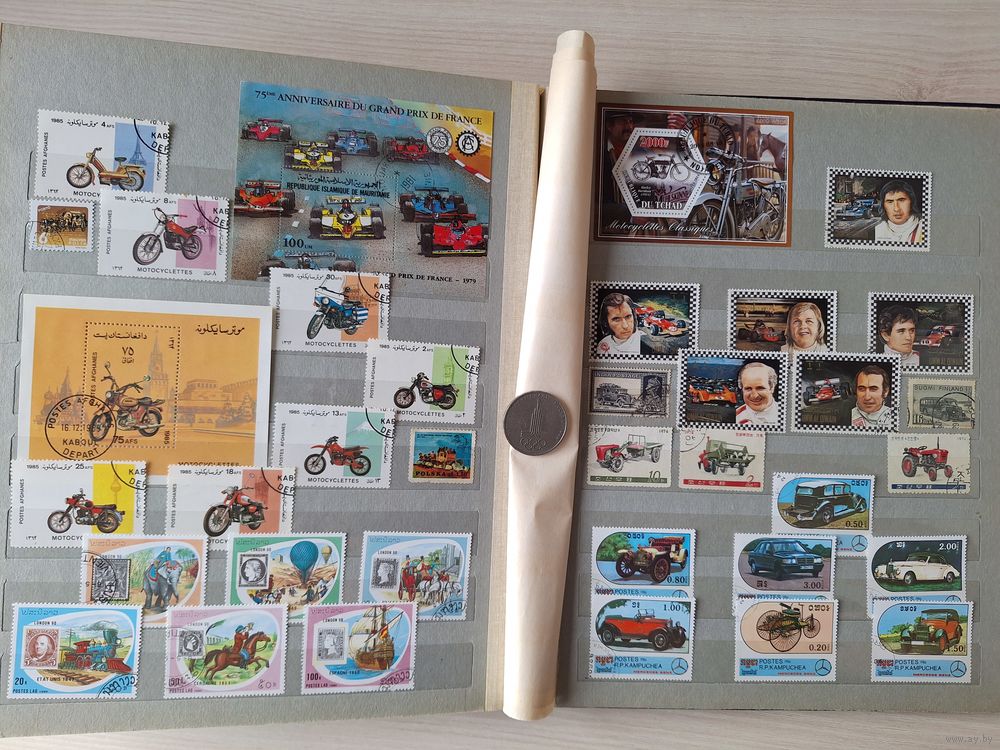 Альбом с марками коллекция по теме транспорт техника машины автомобили самолеты поезда флот