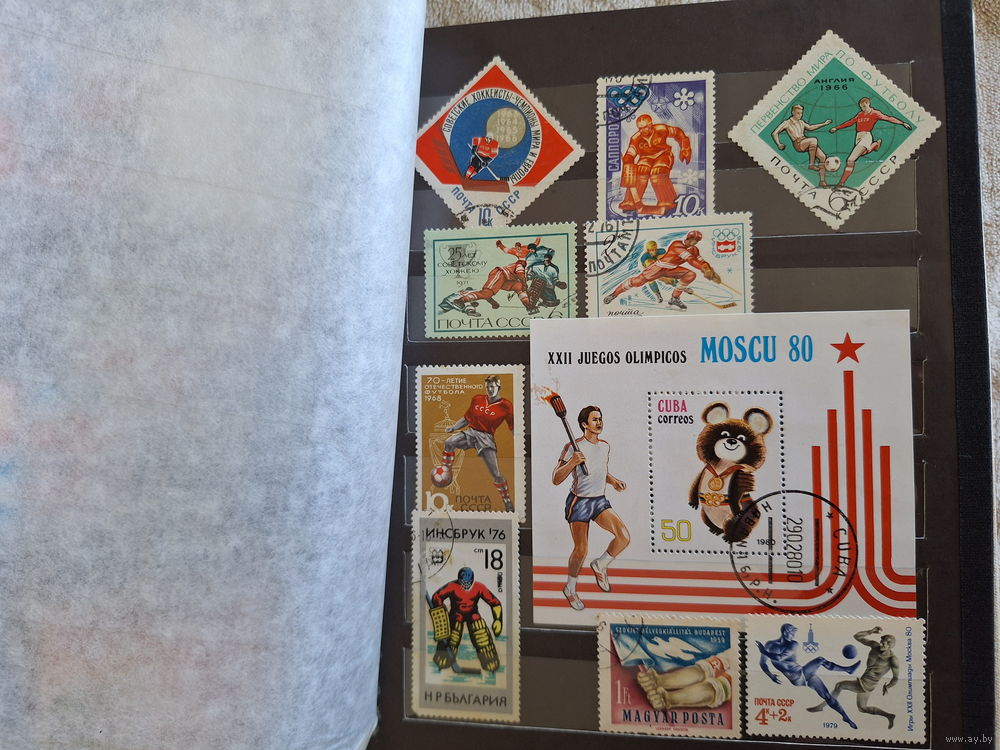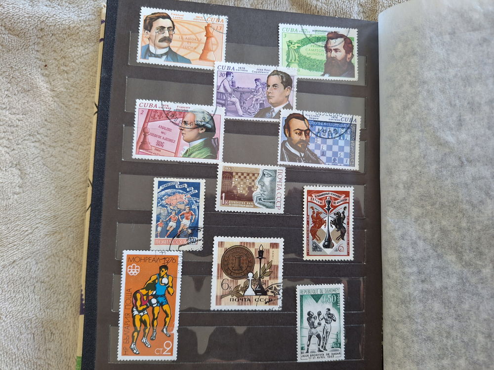 Альбом с марками - спорт - шахматы, футбол, хоккей, бокс - красивая и интересная коллекция марок