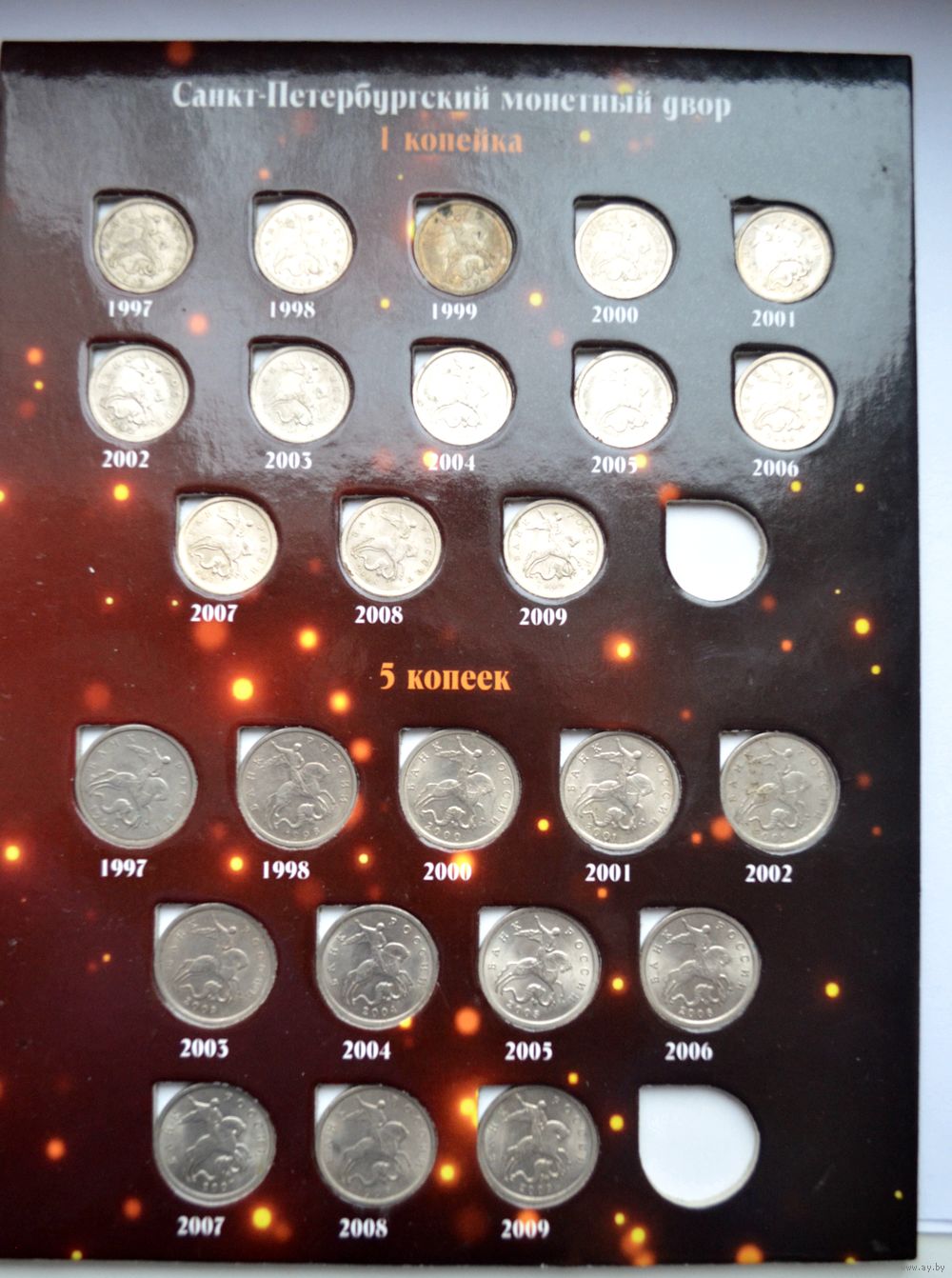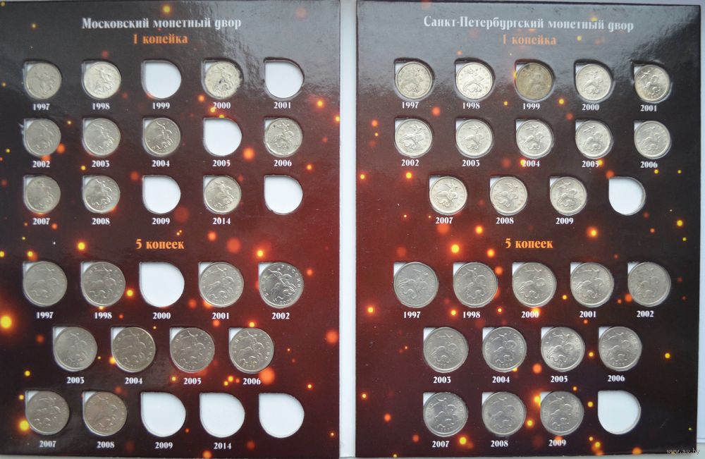 Альбом с монетами России. Современные Копейки 5 и 1 копейка