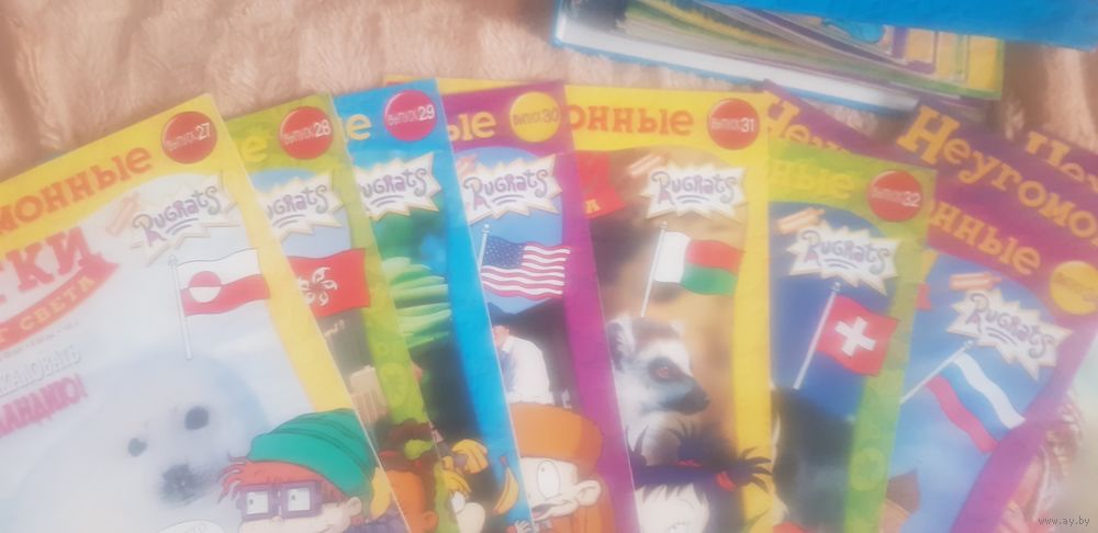 | Номера журналов 1-3, 8-32, 34, 38 и 46. На 7-ом фотографии то что наклеено по номеру и названия страны означает есть журналы, а остальные номера 27-32, 34, 38 и 46 без наклеек | |