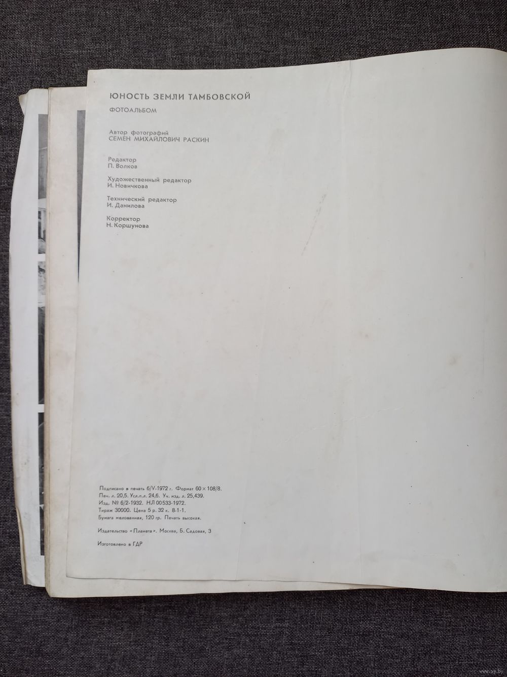 Альбом, книга, "Юность Земли Тамбовской" 1972 год, сделано в ГДР, лощеная бумага, тираж 30 000.
