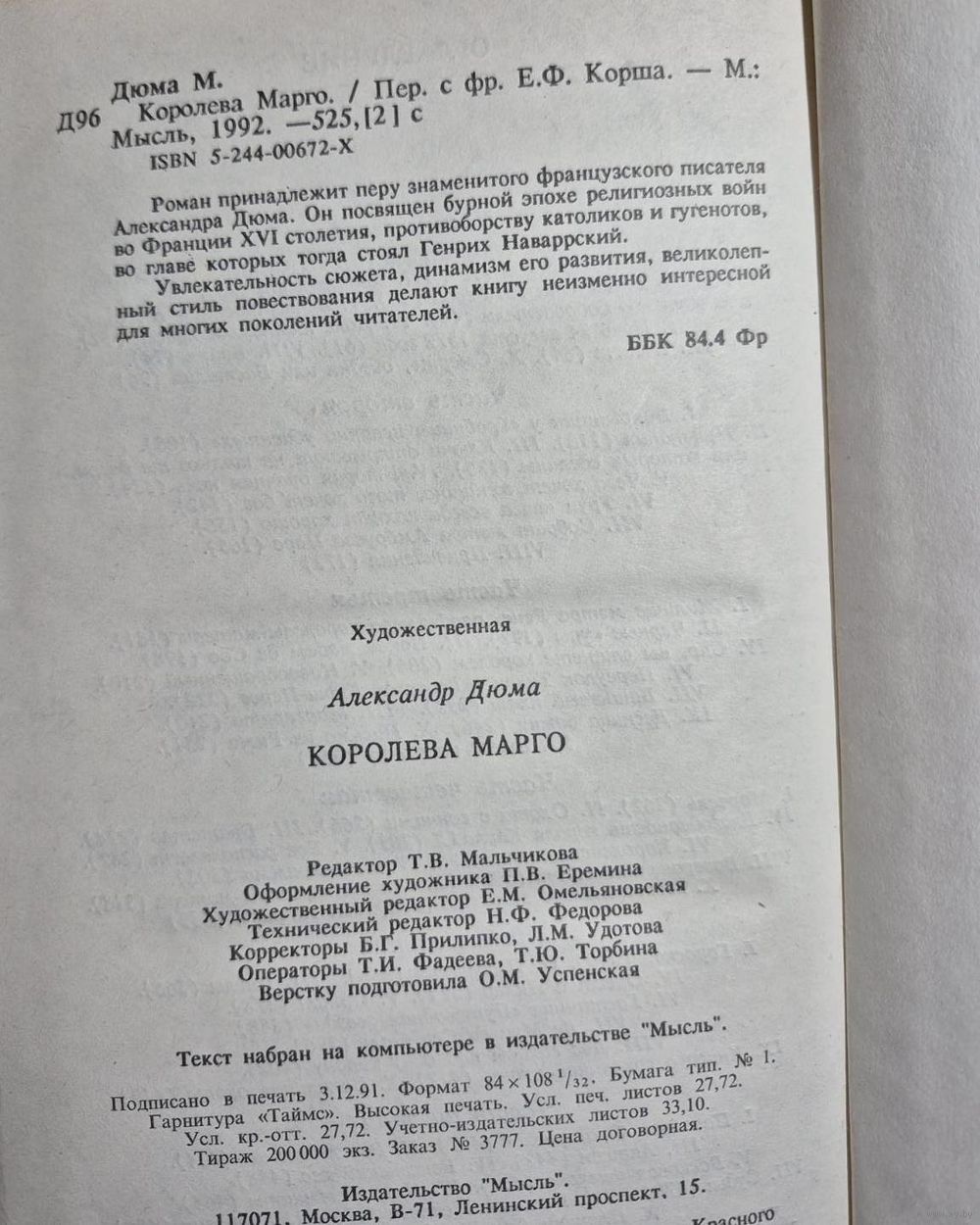 28. Александр Дюма ''Королева Марго'' Пер. С фр. Е.Ф. Корша, Москва, Мысль, 1992, 525 стр.
