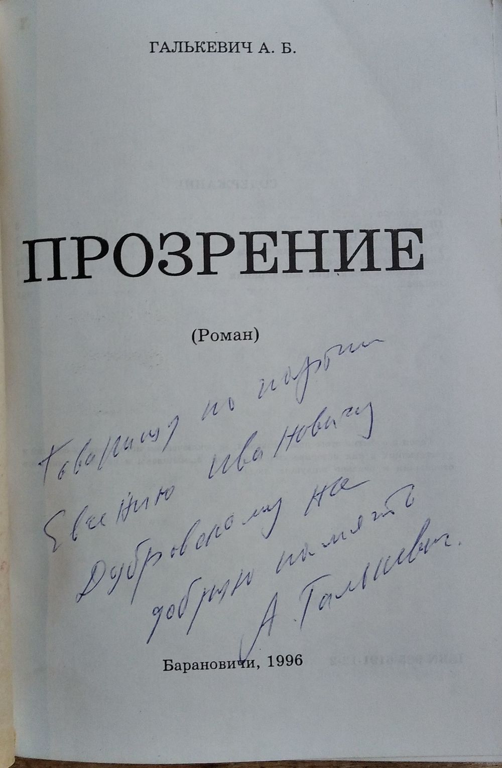 Александр Галькевич. Прозрение: Не политический роман. Автограф автора. Барановичи, 1996 г. 394 с. Мягкая обложка.