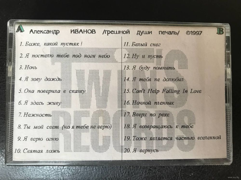 Александр Иванов, Twins Records, Твинс Рекордс, Грешной души печаль, Боже какой пустяк, редкая кассета, лицензия, коллекционирование, 1997 год, Рондо, рок на кассетах