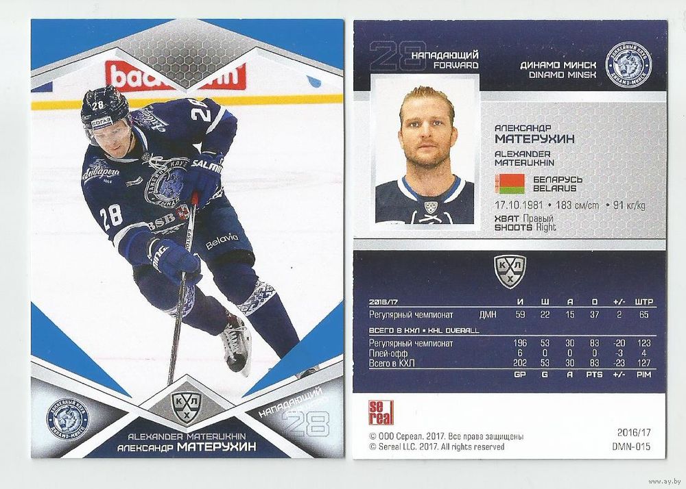Александр Матерухин / "Динамо" Минск / Параллель: синяя / Коллекция "SeReal Карточки КХЛ 2016-2017".