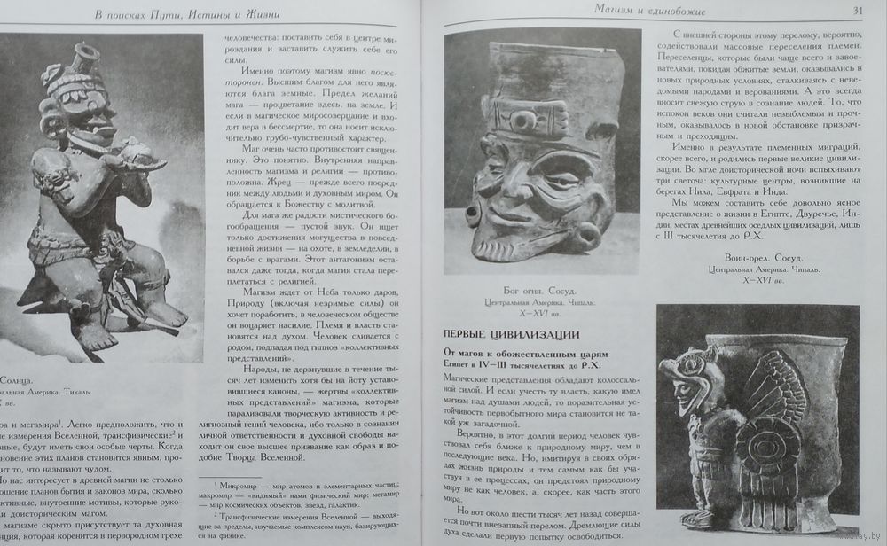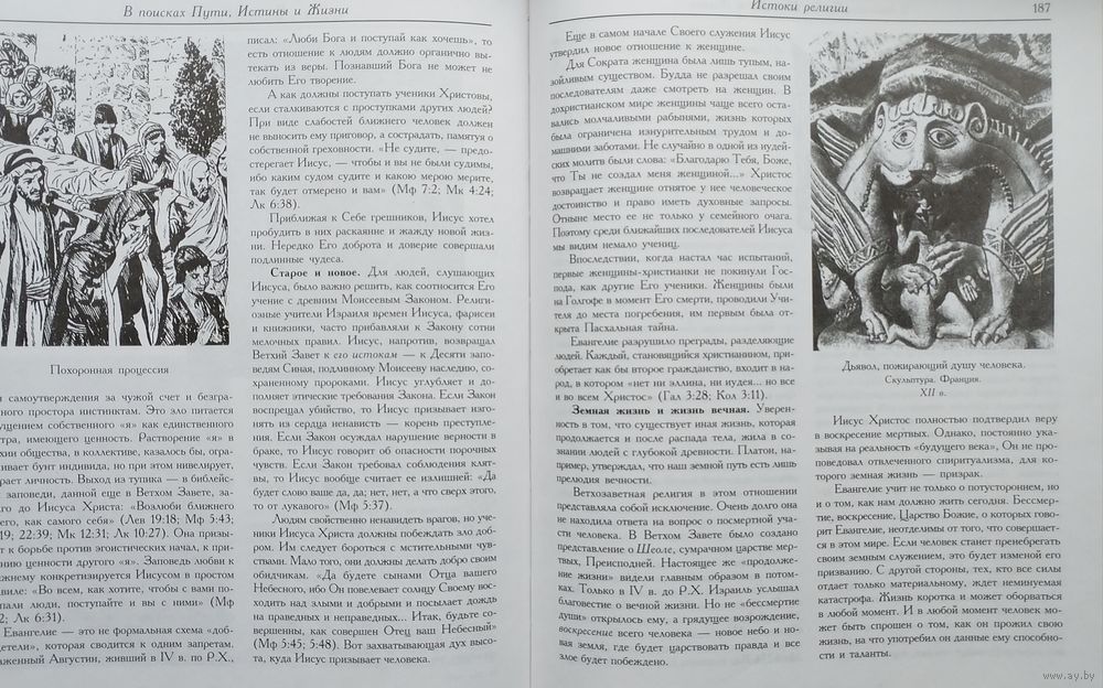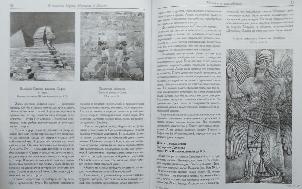 Цена за 2 тома. Большой энциклопедический формат. Тираж 6000 экз. 218+216 стр. Книга Александра Меня "История религии. В поисках Пути, Истины и Жизни" - это повествование о духовных исканиях человечества. Читатель найдет в ней богатый материал о духовных традициях Древнего Востока, о религии и философии Древней Греции, о событиях библейской истории со времен вавилонского плена до прихода в мир Иисуса Христа. Вторая книга "История религии. Пути христианства" - логическое продолжение первой книги "История религии. В поисках Пути, Истины и Жизни". Это увлекательное повествование об исторических событиях I тысячелетия н.э., связанных с распространением христианства. Автор рассказывает о миссионерской деятельности апостолов, учеников Иисуса Христа, взаимоотношениях христианской Церкви и государства, разделении единой Церкви Христовой на Западную и Восточную, крещении Руси, зарождении великой христианской культуры. В Приложении приведены статьи, посвященные двум другим мировым религиям, - иудаизму и исламу. Книга предназначена для преподавателей и учащихся средней школы, гимназий, лицеев, а также для всех, кто интересуется историей религии. Она может быть использована как самостоятельное учебное пособие и как дополнительный материал при изучении других исторических дисциплин.
