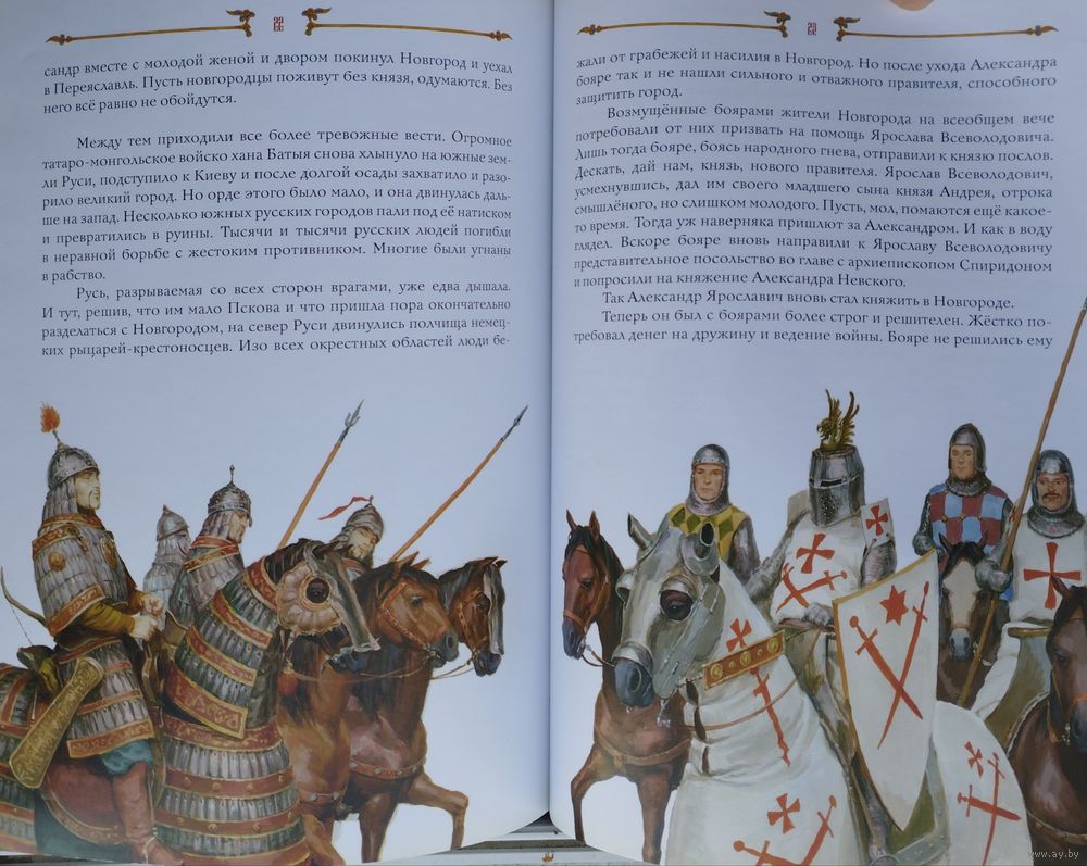 Большой энциклопедический формат. Иллюстрации Дениса Гордеева. Книга рассказывает об Александре Ярославиче Невском, о его детстве, взрослении и о славных победах во время его княжения. Известный детский поэт и писатель Виктор Лунин обстоятельно и захватывающе повествует о времени становления Российского государства, о важном моменте в истории, который стал поворотным в судьбе страны. Исторически достоверные иллюстрации Дениса Гордеева воссоздают дух эпохи - с первой страницы читатель переносится в полную приключений и легендарных сражений жизнь средневековой Руси.