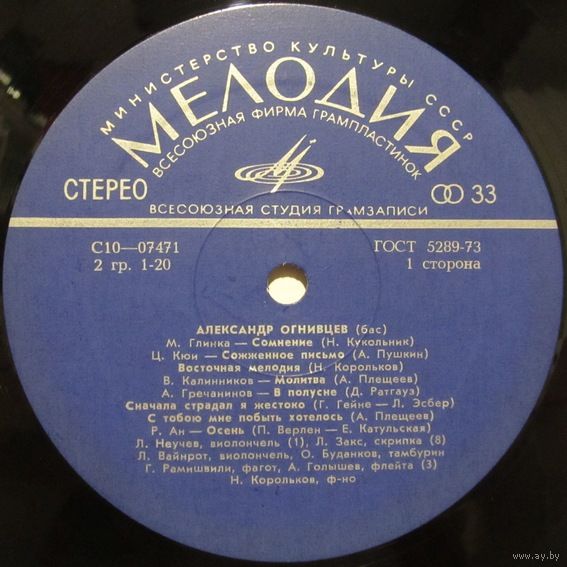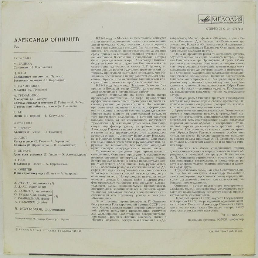 Александр Огнивцев (бас) - Романсы (М. Глинка, Ц. Кюи, В. Калинников, А. Гречанинов, Р. Ан, Ф. Шуберт, Ф. Лист, Р. Штраус, Э. Григ, А. Онеггер)