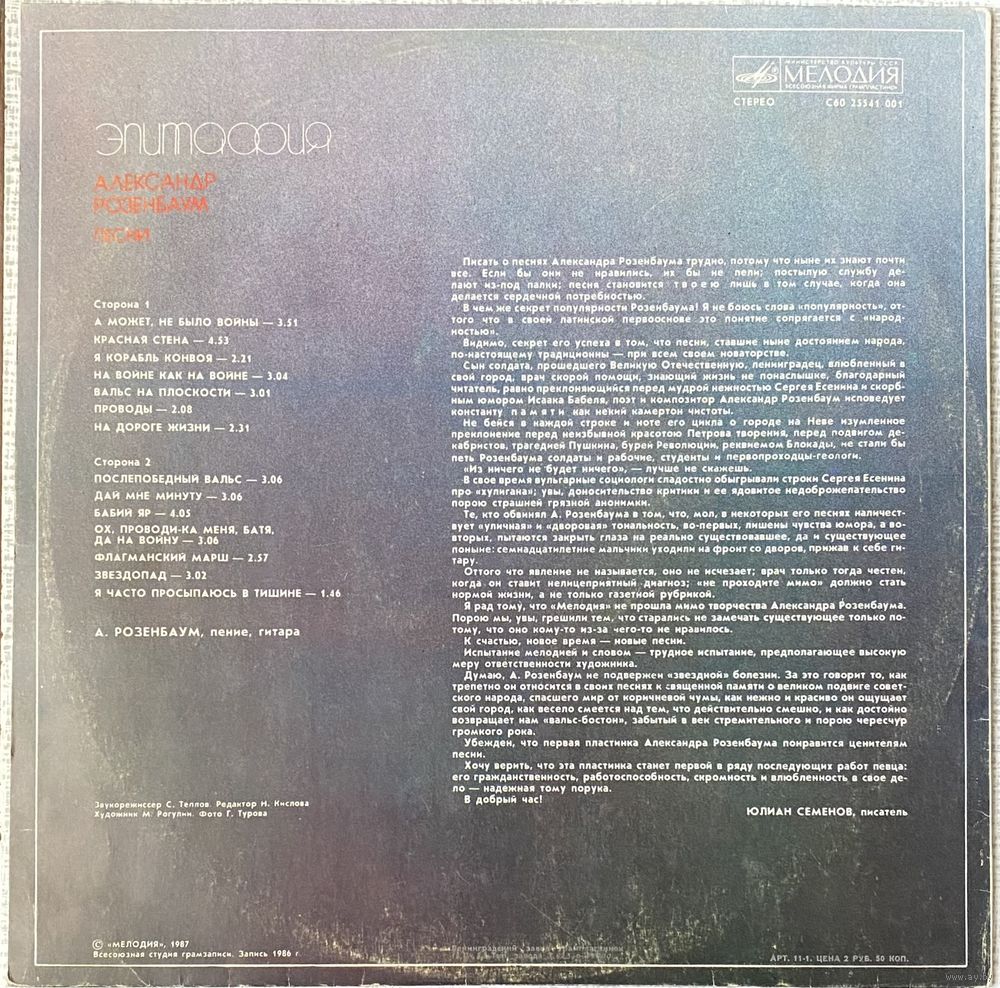| Исполнитель | Александр Розенбаум |