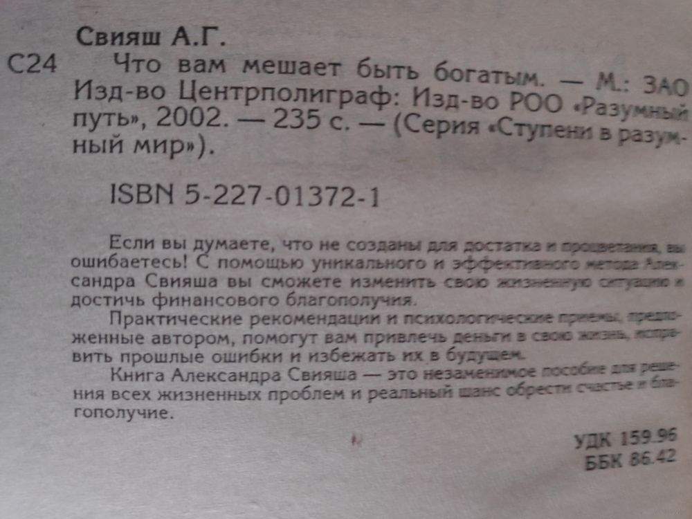 Если вы думаете, что не созданы для достатка и процветания, вы ошибаетесь! С помощью уникального и эффективного метода Александра Свияша вы сможете изменить свою жизненную ситуацию достичь финансового благополучия.Практические рекомендации и психологические приемы, предложенные автором, помогут вам привлечь деньги в свою жизнь вить прошлые ошибки и избежать их в будущем.Книга Александра Свияша - это незаменимое пособие для решения всех жизненных проблем и реальный шанс обрести счастье благополучие.