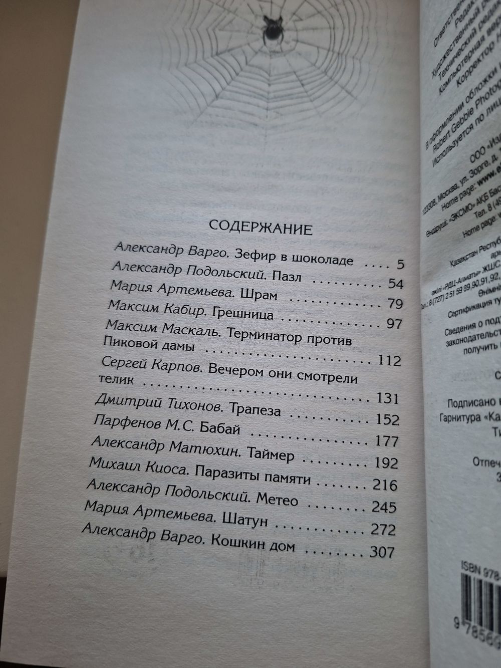 Сборник малой прозы в жанре хорорр. Содержание на фото.