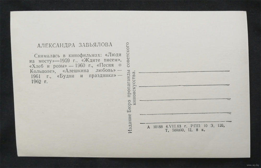 Александра Завьялова. Актеры театра и кино. Артисты эстрады. 1963 год. Чистая #0034-U1P17