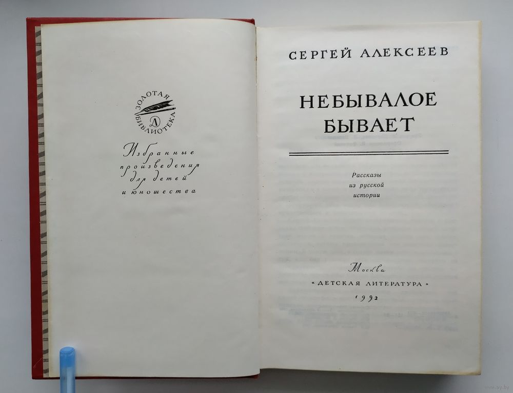 Алексеев С. Небывалое бывает: Рассказы из русской истории. Серия «Золотая библиотека». Избранные произведения для детей и юношества. Рисунки Н. Доронина, Л. Непомнящего. Оформление И. Фоминой. М.: Детская литература, 1992г., 654 с., ил. Твёрдый переплёт, обычный формат.