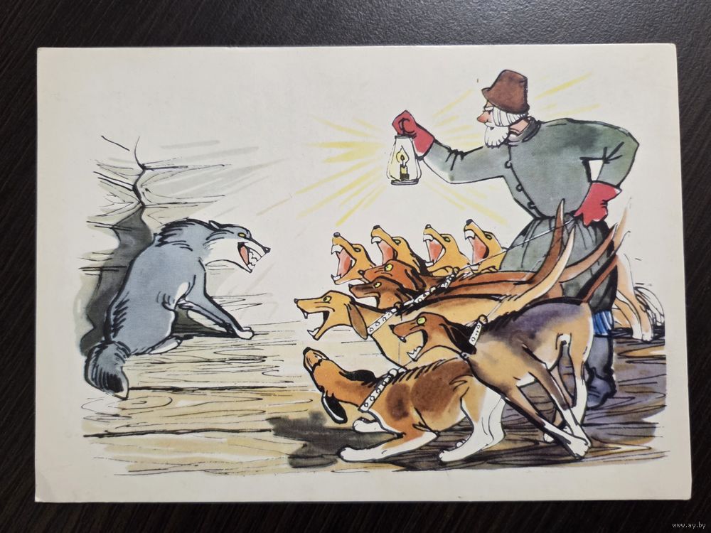 Алексеев Строганова Волк на псарне 1967 чистая открытка СССР