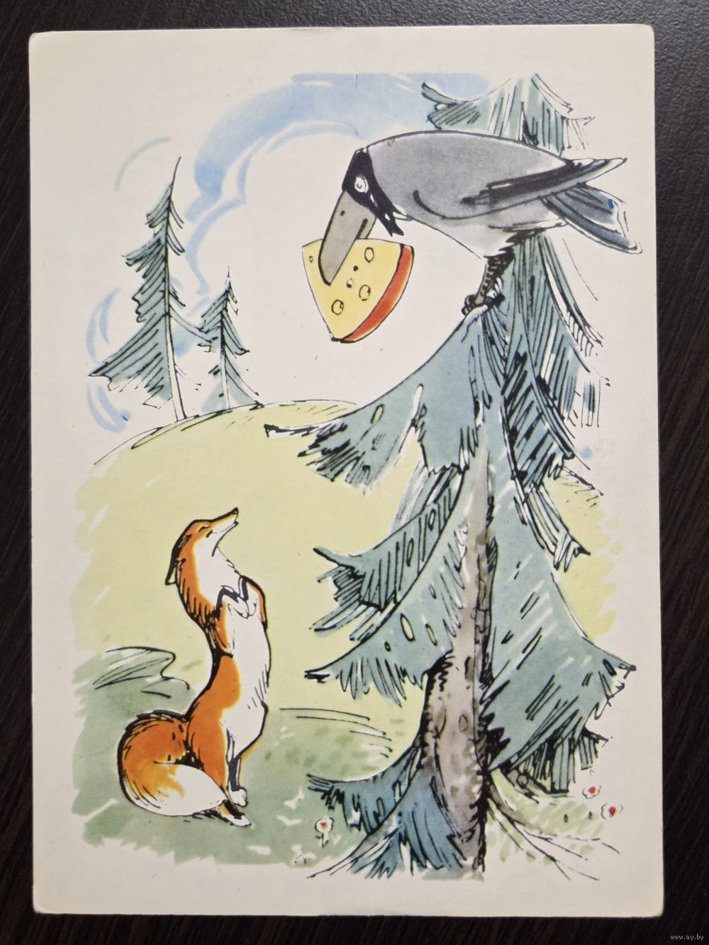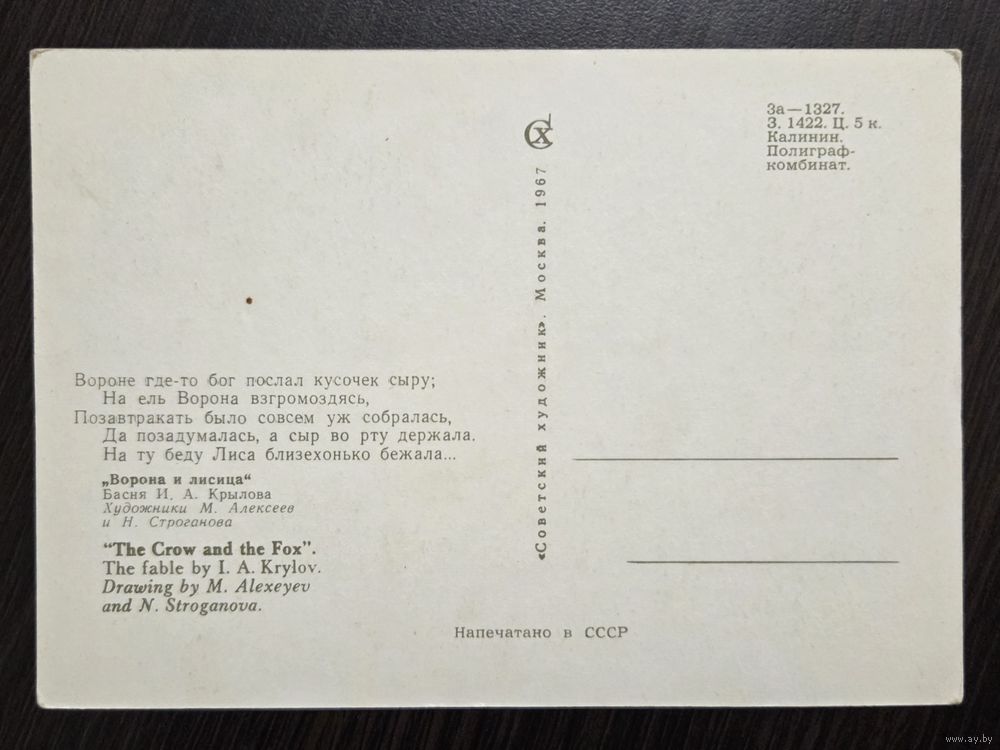 Алексеев Строганова Ворона и лисица 1967 чистая открытка СССР