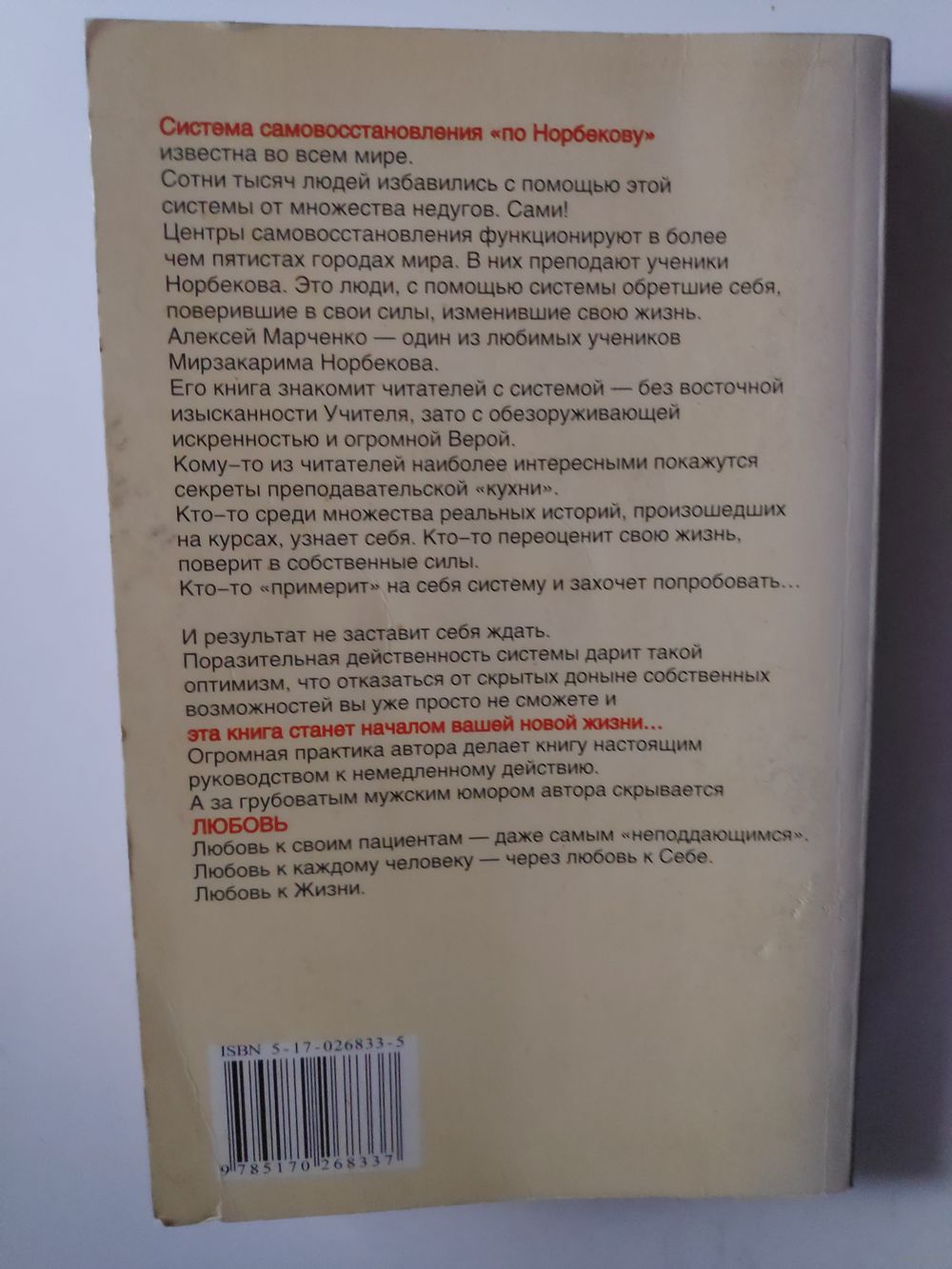 Центры самовосстановления функционируют в более чем пятистах городах мира. В них преподают ученики Норбекова. Это люди, с помощью системы обретшие себя, поверившие в свои силы, изменившие свою жизнь. Алексей Марченко - один из любимых учеников Мирзакарима Норбекова.