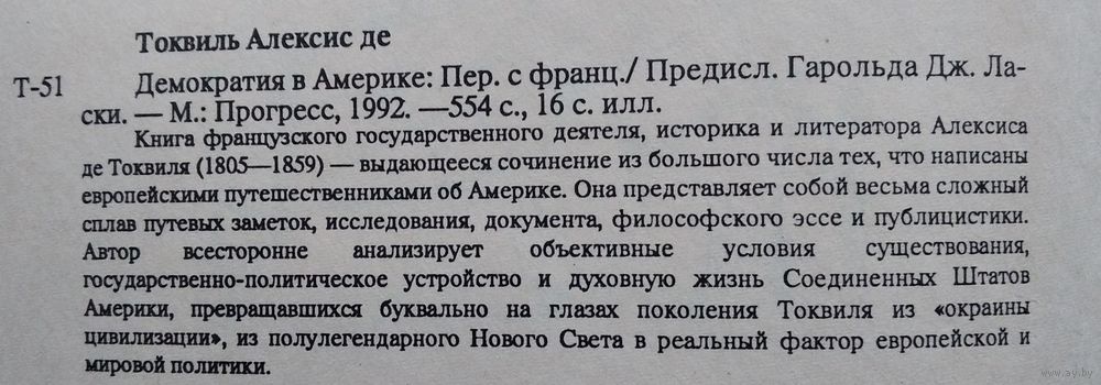 Алексис де Токвиль. Демократия в Америке. Перевод с франц. Предисл. Гарольда Дж. Ласки. Москва . Прогресс 1992 г. 554 с. Твердый переплет, Увеличенный формат.