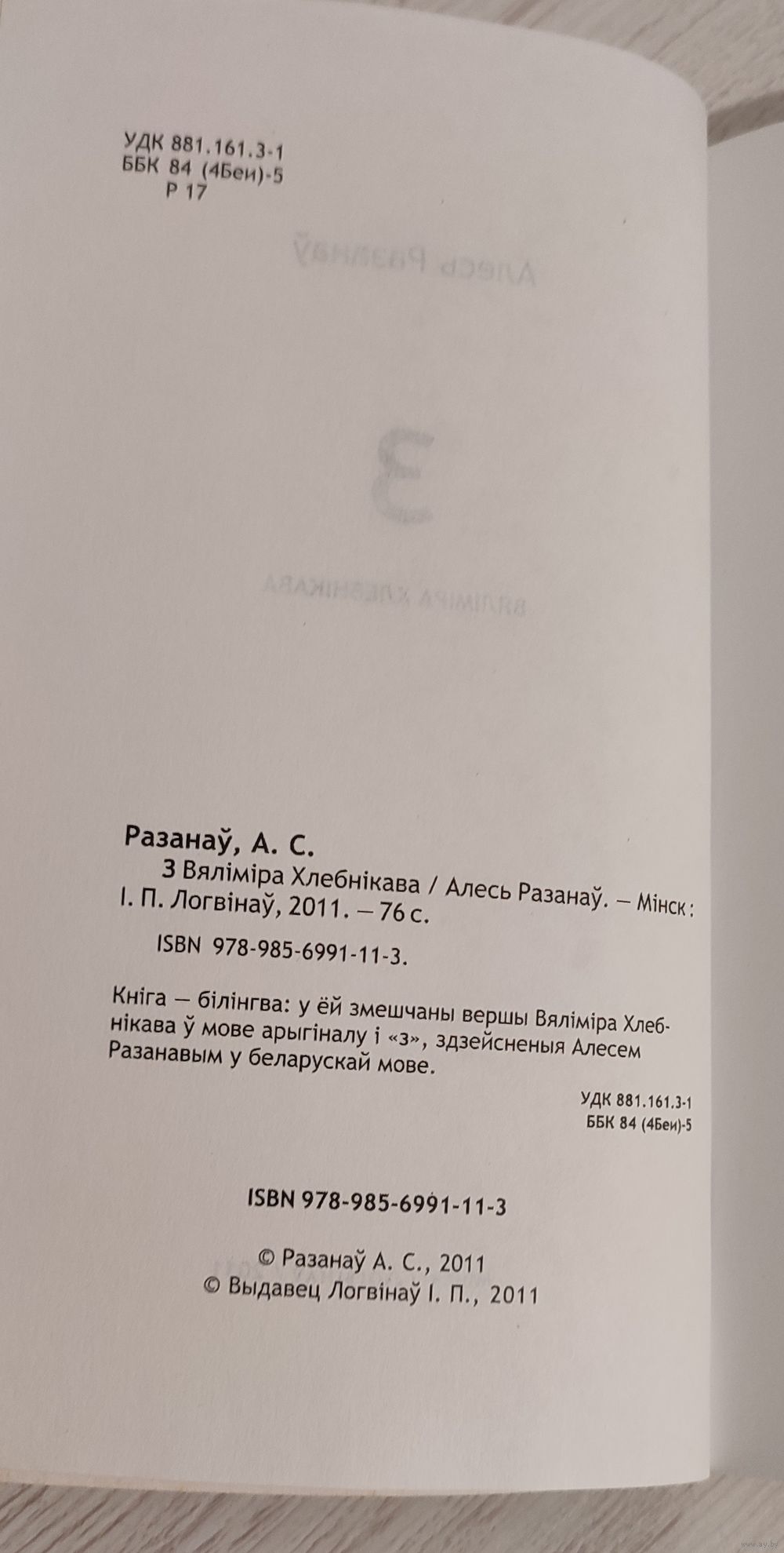 Кніга — білінгва: у ёй змешчаны вершы Вяліміра Хлебнікава ў мове арыгіналу і “з”, здзейсненым Алесем Разанавым у беларускай мове.