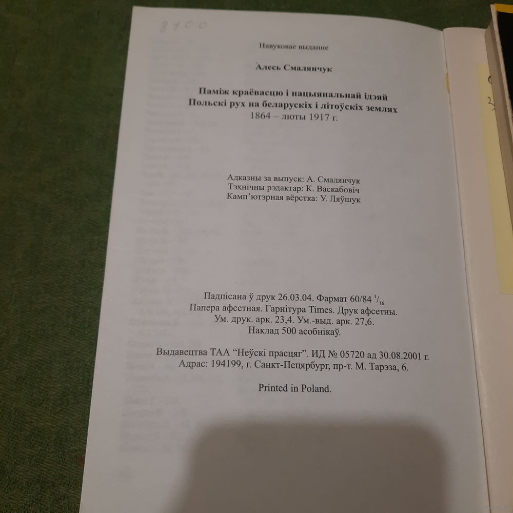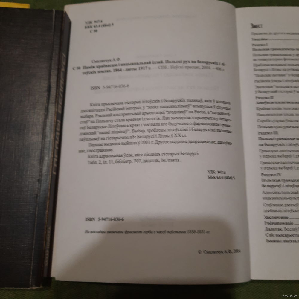 Алесь Смалянчук Паміж краёвасцю і нацыянальнай ідэяй Польскі рух на беларускіх і літоўскіх землях 1864 - люты 1917. Санкт-Пецярбург 2004г.