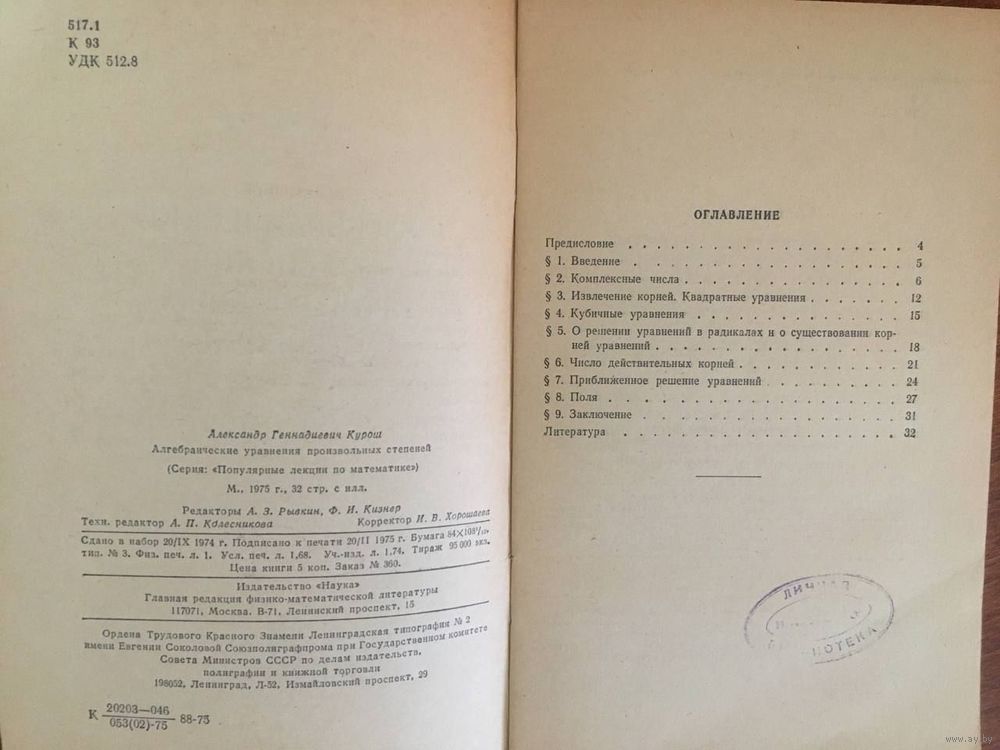 Выпуск 7. Издание 2-е. Брошюра написана на основе лекции, прочитанной автором в МГУ для школьников девятых и десятых классов - участников математической олимпиады. В ней дан обзор результатов и методов общей теории алгебраических уравнений. Доказательства при этом не приводятся. Даже при таком условии чтение брошюры не превращается в легкое развлечение: книга требует от читателя сосредоточенного внимания,