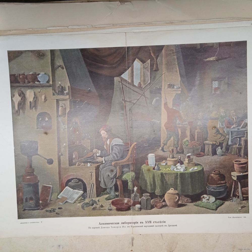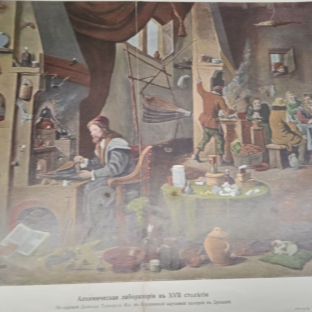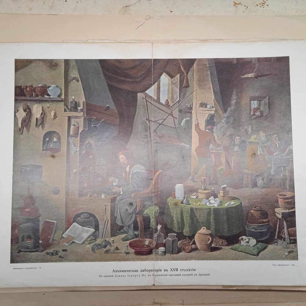 Алхимическая лаборатория въ 17 столетии. Старинная литография размер 38х28см.19- 20в. СПБ. РАСПРОДАЖА КОЛЛЕКЦИИ.