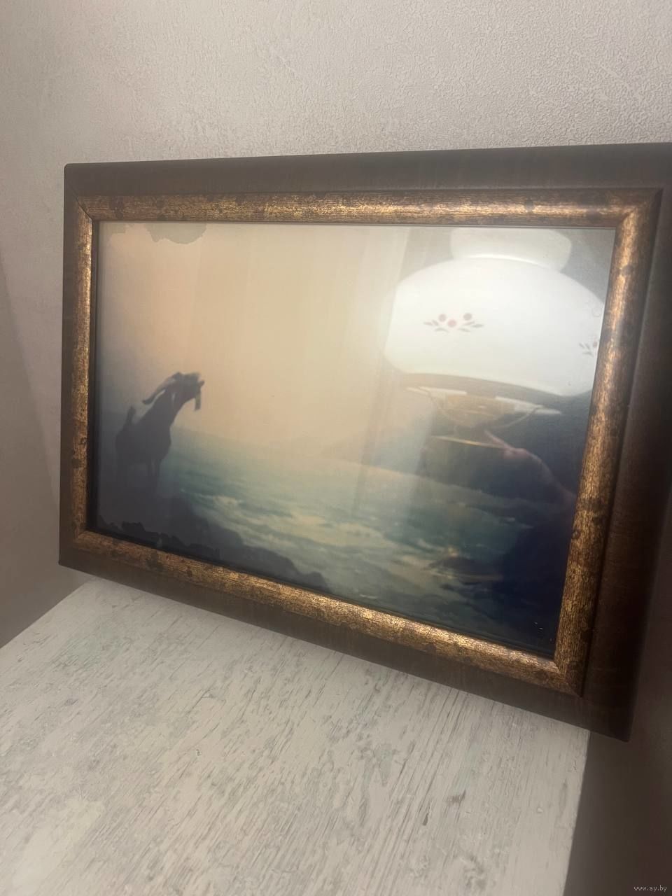 Есть подтёки из-за неправильного хранения и вероятно принт приклеился к стеклу.